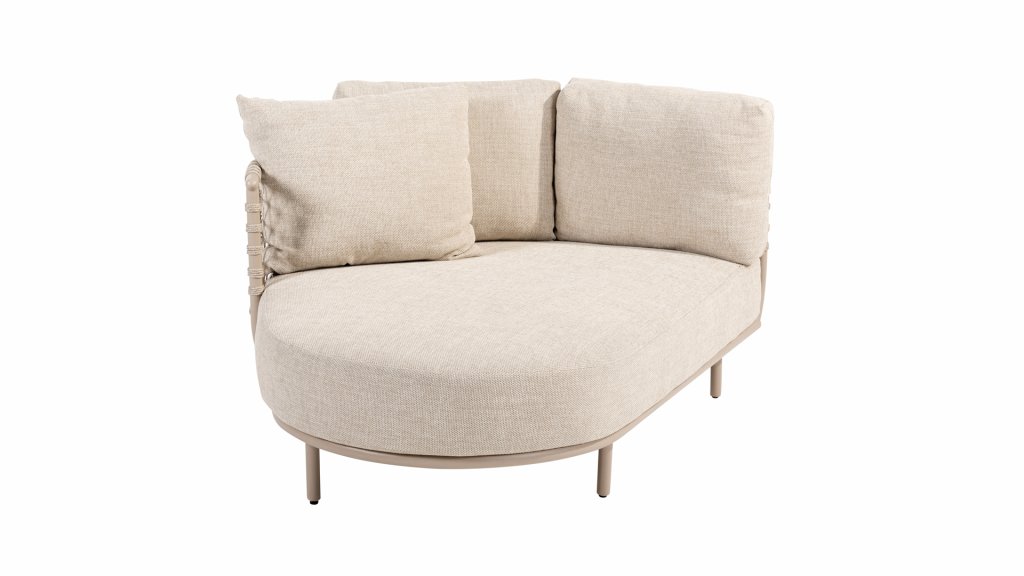 Looking for comfort and unique design? The 4Seasons Outdoor Sardinia chaise lounge sofa has it all. With its latte stainless steel frame and latte colored cushions, this set gives a true summer feel. The way the rope is knotted gives the 4SO Sardinia an open appearance. The Chaise-Lounge provides a cozy corner to relax with your loved one.