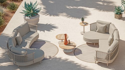 The hand-woven Puccini lounge chair from 4 Seasons Outdoor beautifully combines with the Sardinia sofa due to the same colors and materials. Within the Puccini series, there are also dining chairs in the same style. This allows you to maintain a cohesive style through combining.