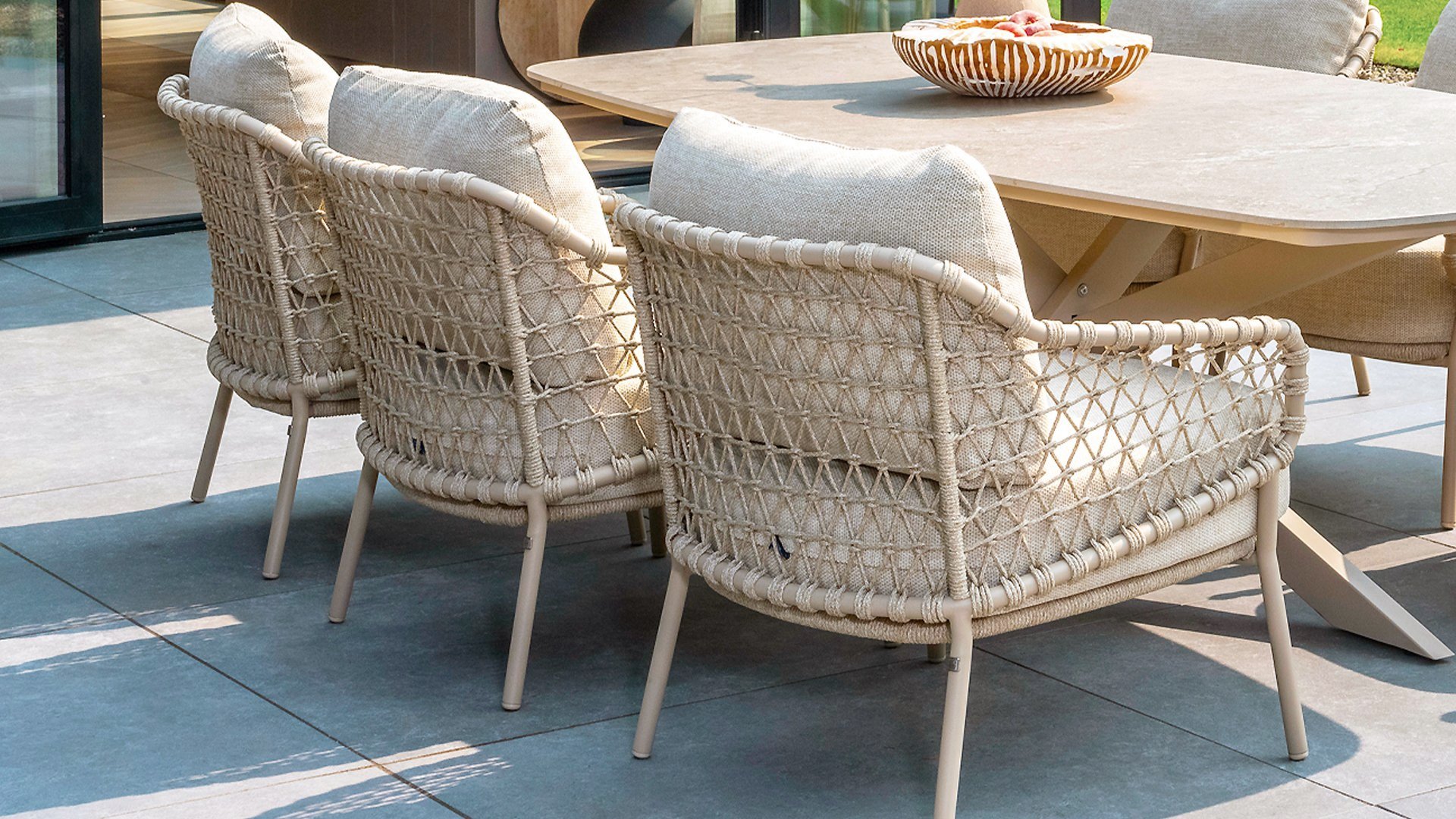 This beautiful material is perfect for outdoor use, because 4SO Rope is not just any shoelace. 4Seasons uses very high-quality rope made from 100% SDP (Solution Dyed Polypropylene). This material is extremely strong and has very little stretch. Polypropylene is oil-based, making it virtually impossible for dirt and contaminants to penetrate, just like our cushions. 4Seasons offers exclusive designs using hand-woven rope patterns and techniques.