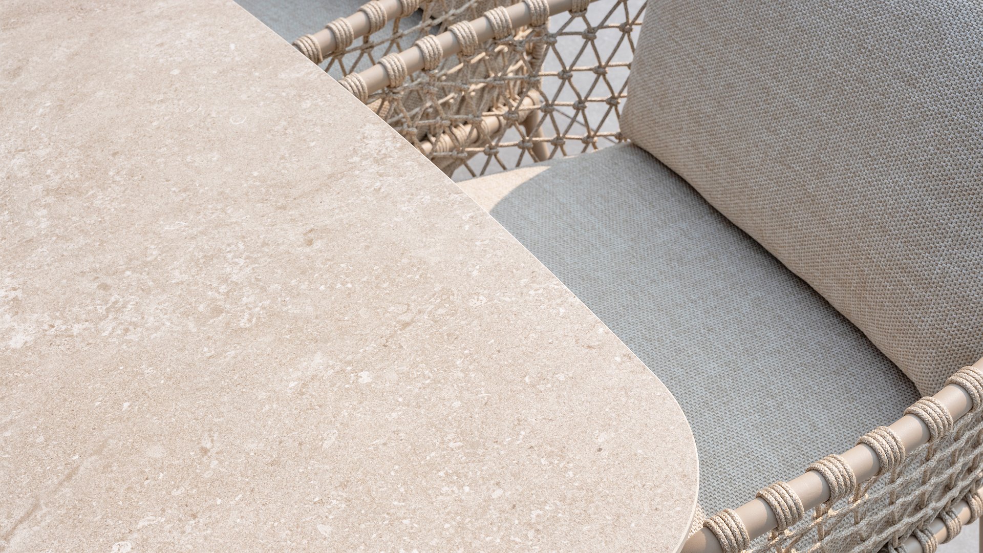 This beautiful material is perfect for outdoor use, because 4SO Rope is not just any shoelace. 4Seasons uses very high-quality rope made from 100% SDP (Solution Dyed Polypropylene). This material is extremely strong and has very little stretch. Polypropylene is oil-based, making it virtually impossible for dirt and contaminants to penetrate, just like our cushions. 4Seasons offers exclusive designs using hand-woven rope patterns and techniques.