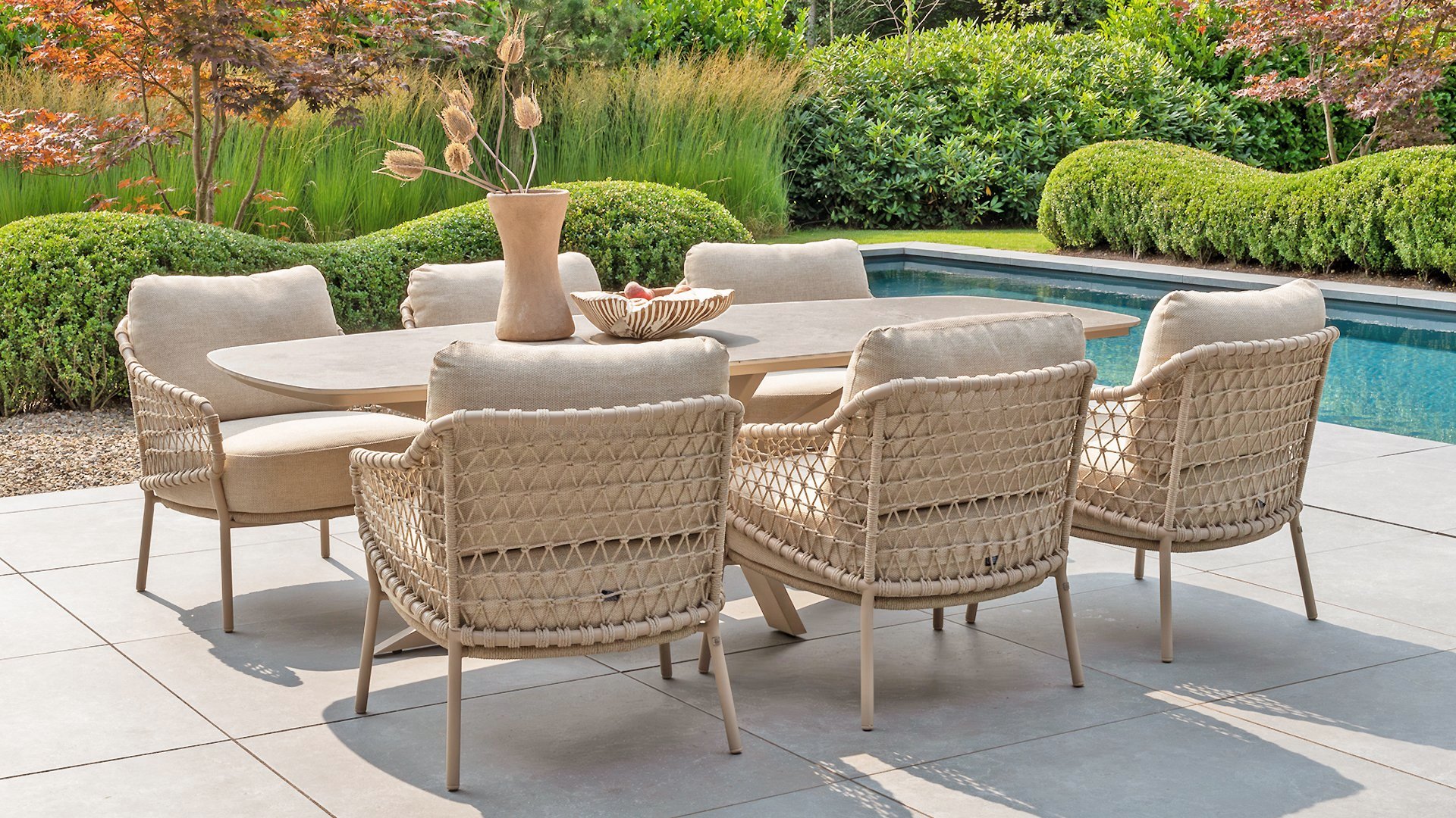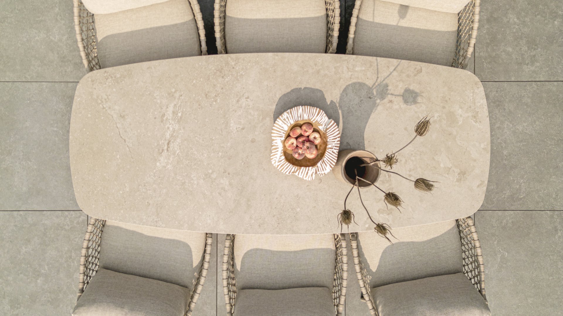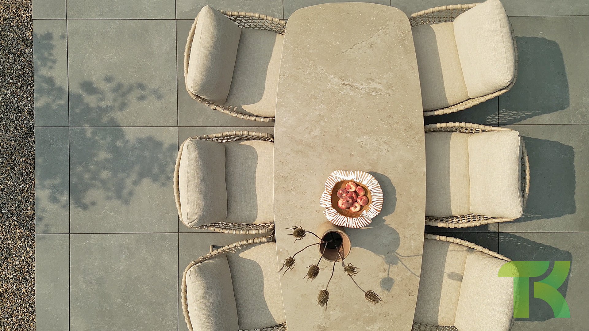 This material has been used for decades as flooring, finishing in bathrooms, and luxury (outdoor) swimming pools. It's no wonder this durable material is known for its extreme hardness. Its beautiful appearance makes ceramic highly distinctive and sought-after. Ceramic is a blend of natural materials similar to a type of clay. It is fired at very high temperatures, creating a light yet very strong material that is extremely scratch-resistant and can also withstand extreme temperatures. As mentioned, ceramic has several unique properties that offer significant advantages, especially for outdoor use. Heat and cold are no problem for ceramic, so garden tables can remain outdoors year-round. For normal soiling, simply wipe the top with a damp cloth. Stains can be removed with lukewarm water and green soap, and limescale can be treated with natural vinegar. However, never use harsh abrasives, such as sandpaper, or aggressive agents like acids and chemicals. Spills of this type must be removed immediately to prevent irreparable damage. Note: We strongly advise against cleaning your ceramic garden furniture with a pressure washer or harsh cleaning agents and/or bleach. We advise against covering your furniture for extended periods or covering it with decorations or other items, as this can cause permanent stains or discoloration. Always be careful with fire, oil, grease, or hot objects near your furniture, as this can cause permanent damage.