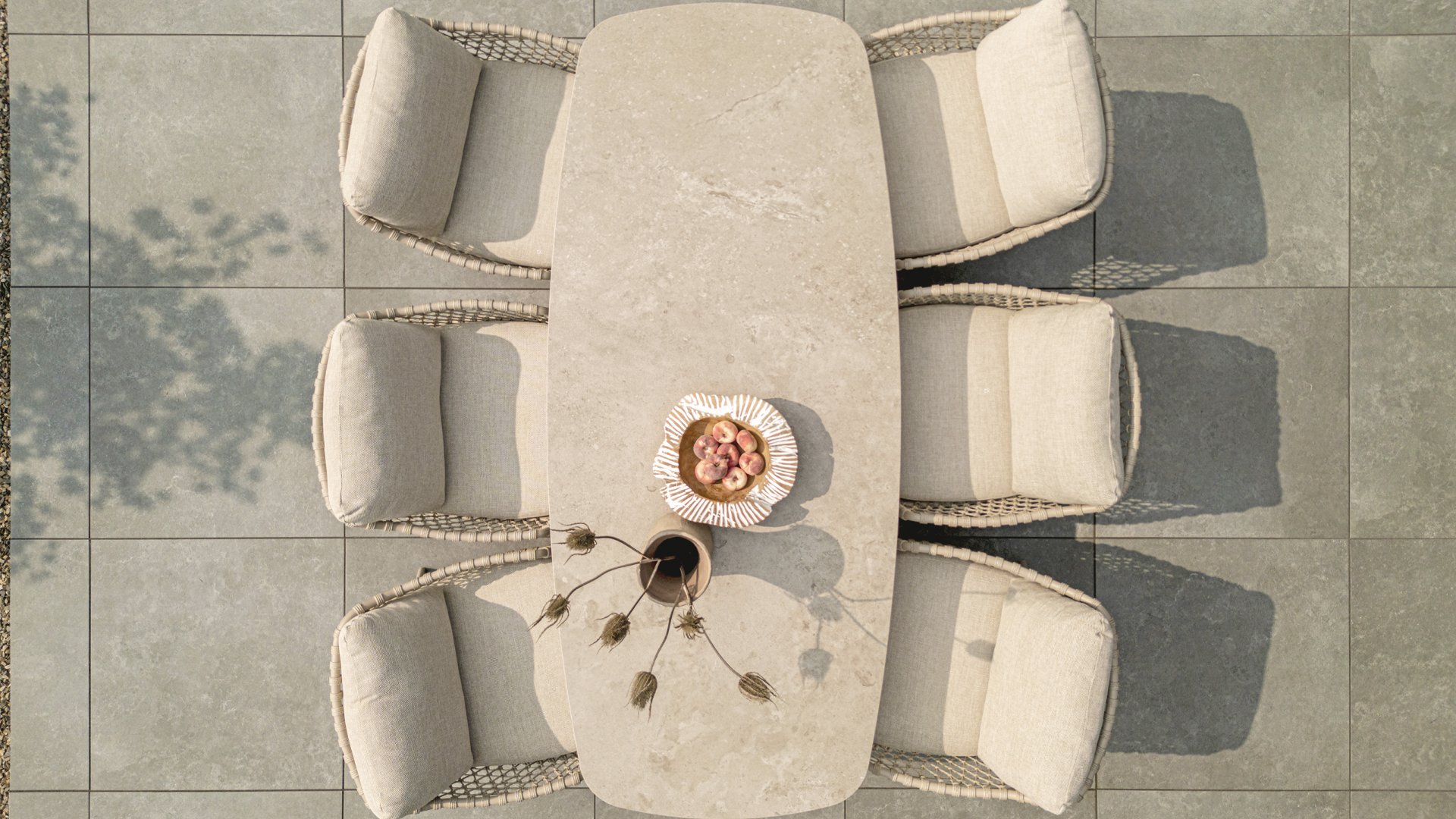 1 x 4Seasons Nevada low dining barrel table ceramic/latte 250x105xH70cm