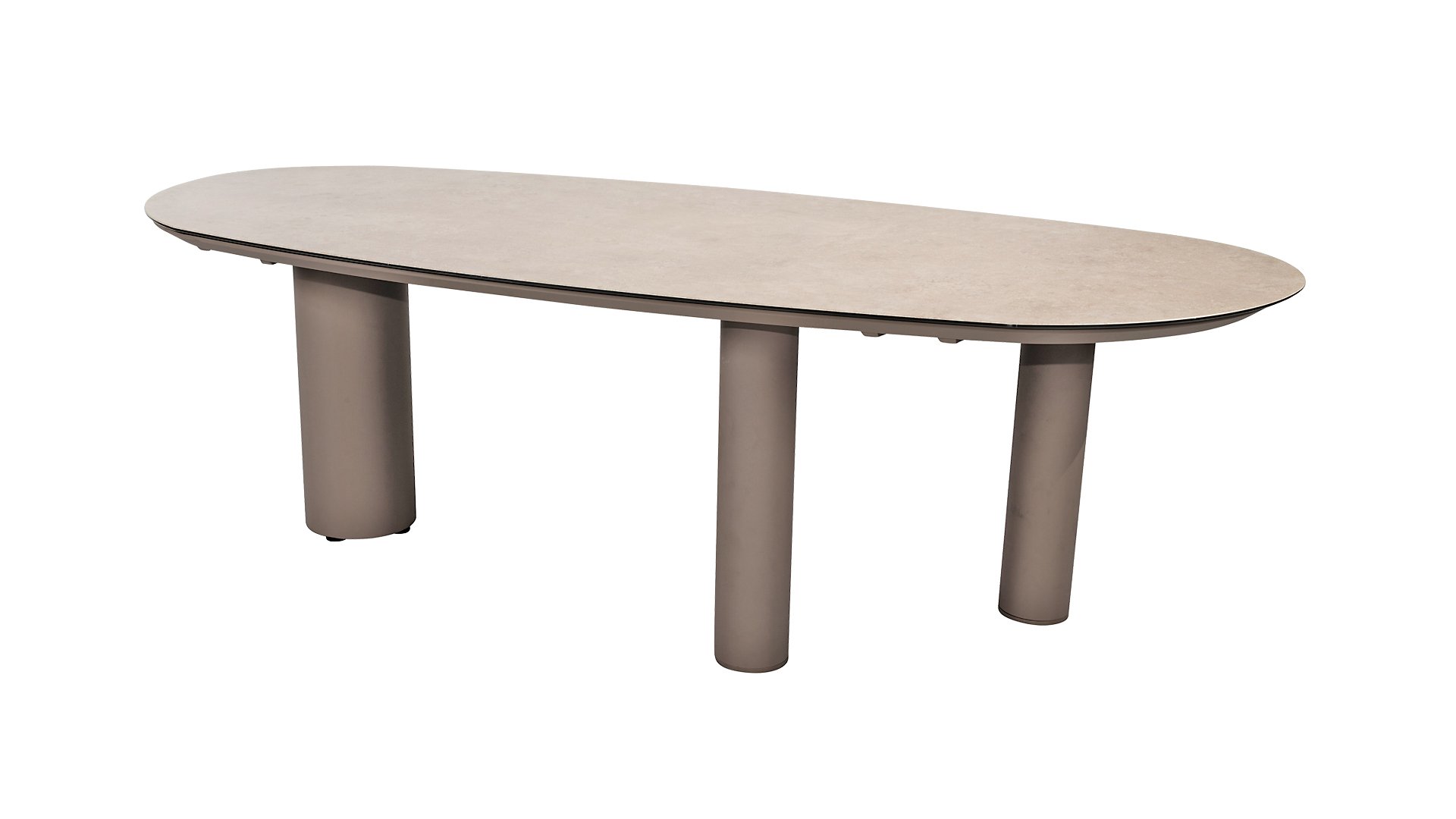 Introducing the Taste by 4 Seasons Outdoor Denia table series – stylish dining in every season. Discover the perfect combination of design, durability, and refinement with the Denia table series. This exclusive series elevates outdoor dining to a new level, with a unique design and high-quality materials that are both functional and elegant. The striking mango-shaped tabletop gives the Denia table a playful, organic silhouette that immediately catches the eye. Available in two colors – Latte and Terre – and two sizes – 290x110x75 cm and 240x105x75 cm. The tabletop is made of ceramic on glass, a strong and easy-to-maintain combination that is resistant to scratches, heat, and stains. The three-legged base, made of powder-coated aluminum, ensures maximum stability and a modern look. View all the options in the Taste Denia table series below: