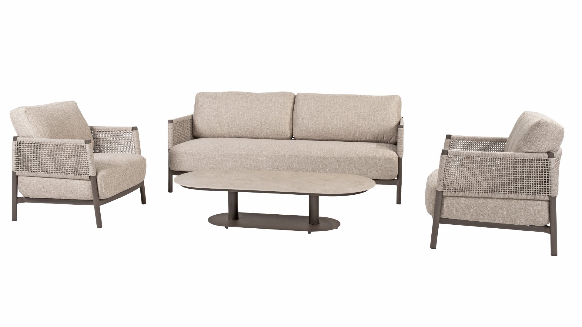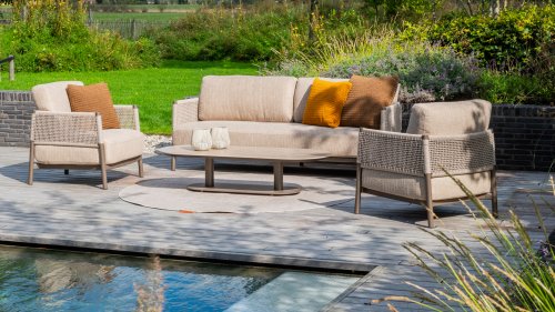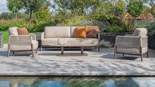 The name Savanne is no coincidence. The lounge set features warm, natural tones reminiscent of the vast African savannas. The terre-colored aluminum frame reflects the earthy colors of sandy plains at sunset, while the unique rope knot pattern references artisanal structures and natural materials. The result is a set that exudes tranquility and is a striking focal point in any garden.