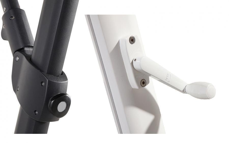 The Siesta is available in both Premium and non-Premium variants. The quality is the same, but the Premium can also tilt sideways. This hanging parasol is also available in the color Anthracite/Taupe.