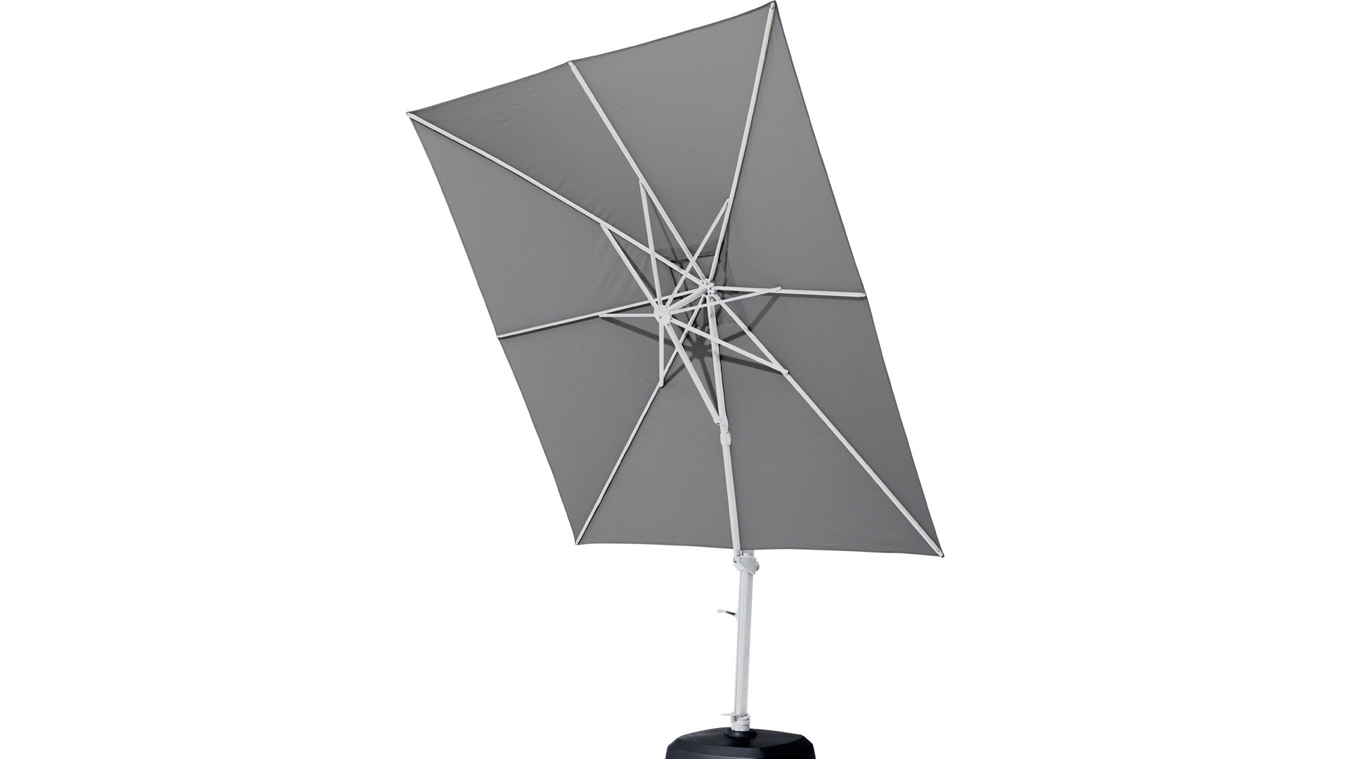 Every cantilever parasol from 4Seasons Outdoor can rotate on the base and tilt backward to catch the low sun.