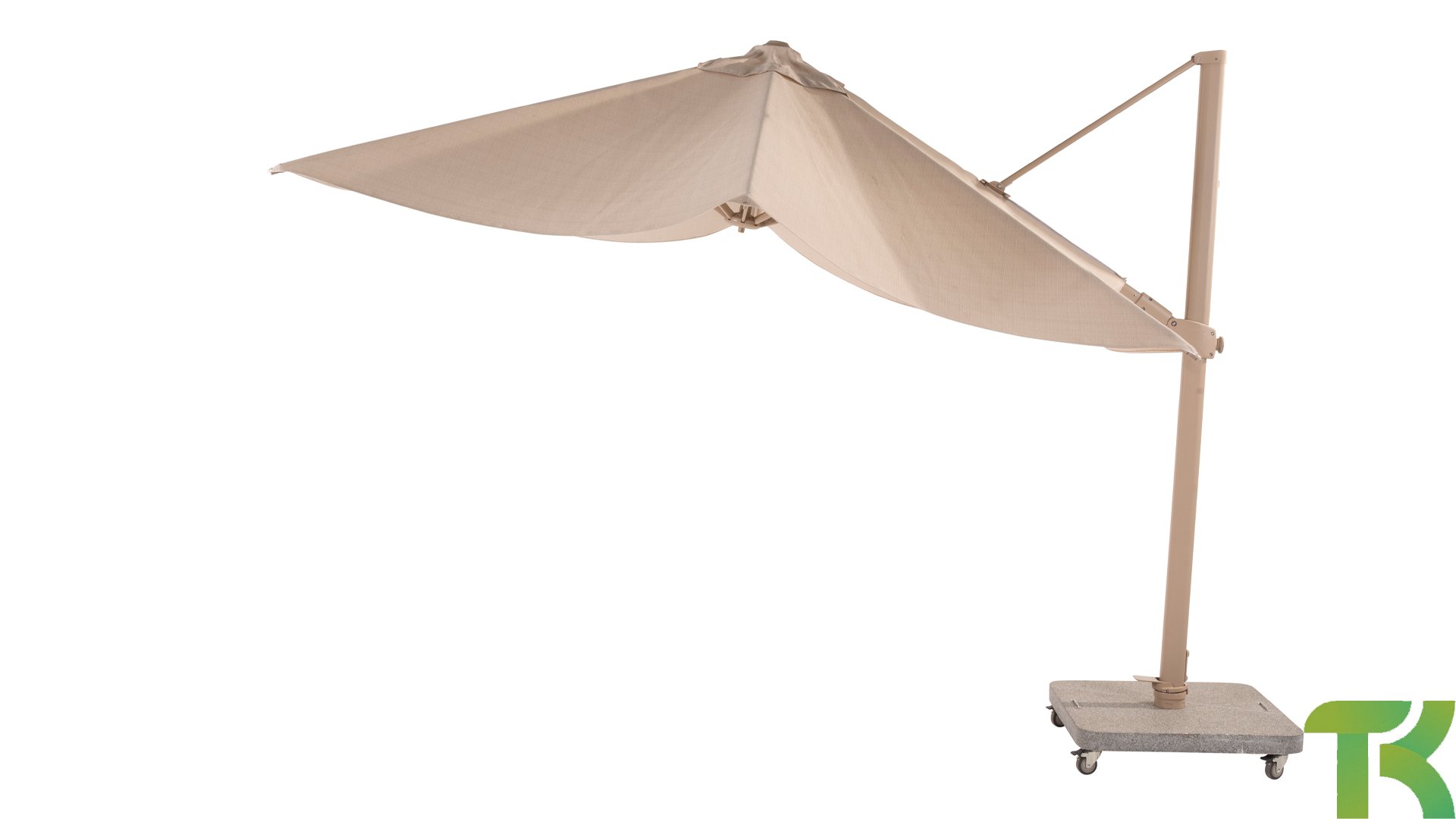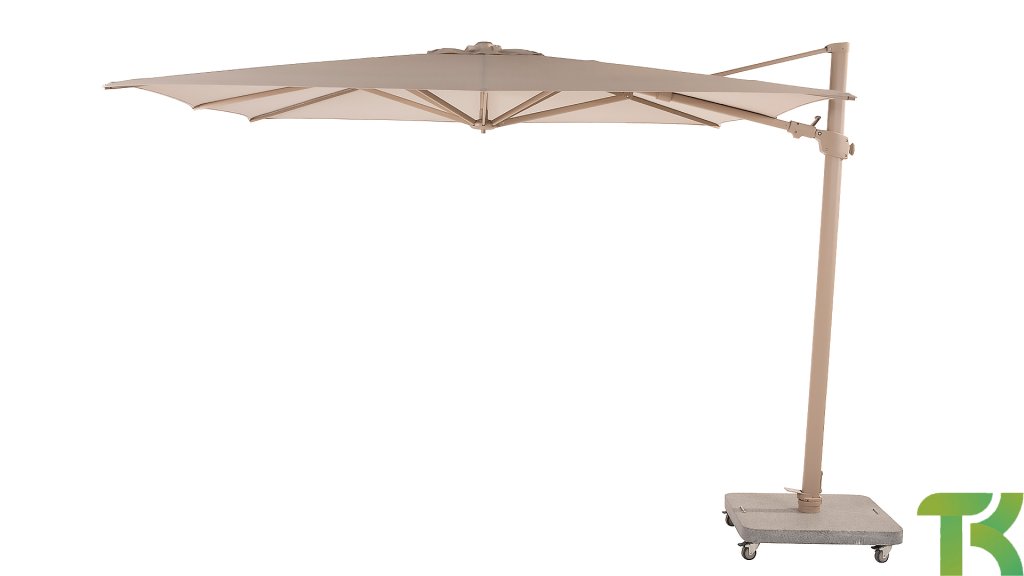 4Seasons Outdoor Siesta is a high-quality cantilever parasol. Made of an aluminum frame, it represents heavy quality. The canopy is made of Solefin, a material known for its high color fastness and durability. Standard 5-year warranty.
