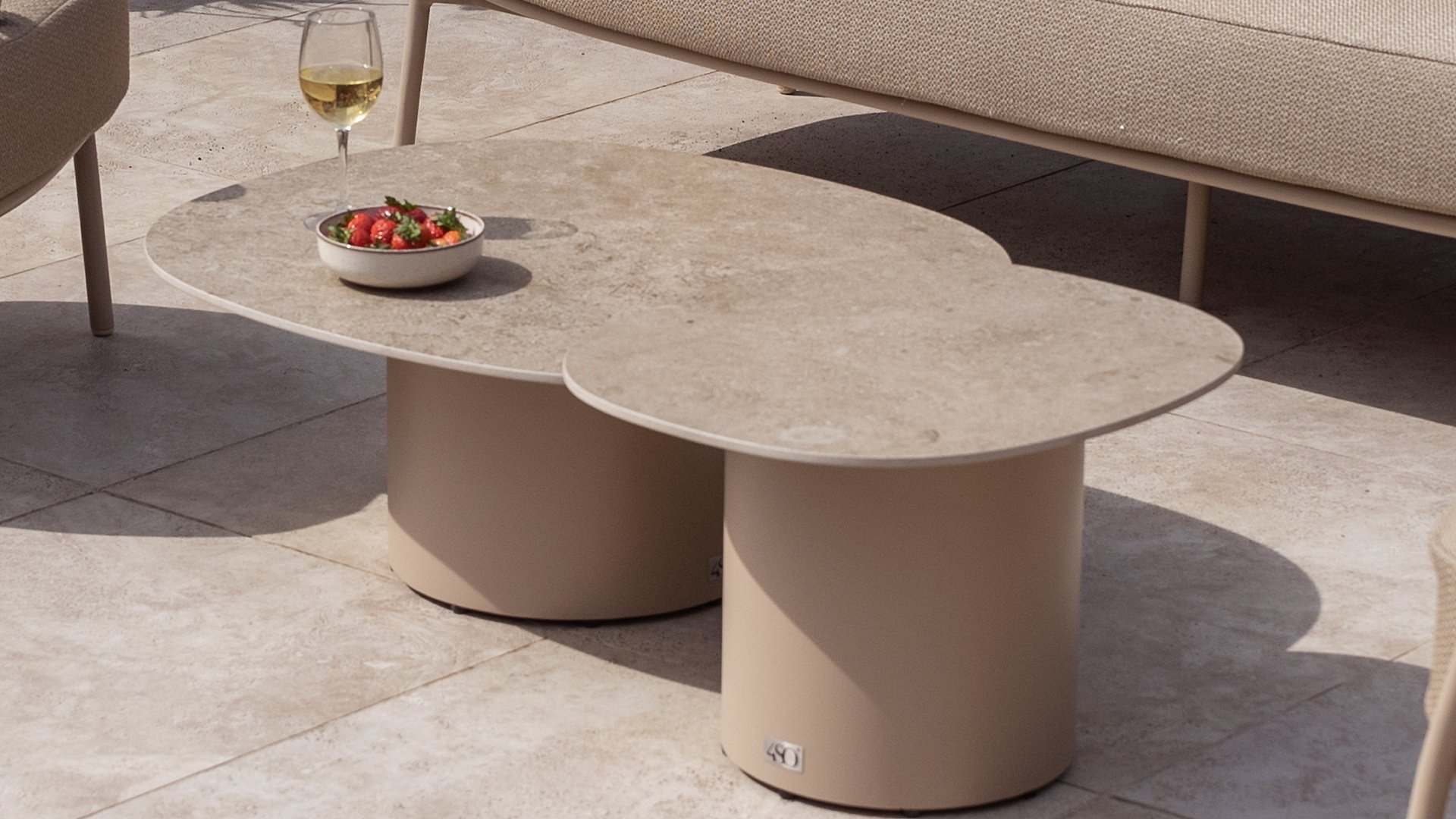 The ceramic tabletop of the Sofie coffee table is very easy to maintain. Simply clean it with a soft cloth and a mild cleaner to keep the table in top condition. The material is resistant to stains, moisture, and scratches, allowing you to enjoy your outdoor furniture worry-free.