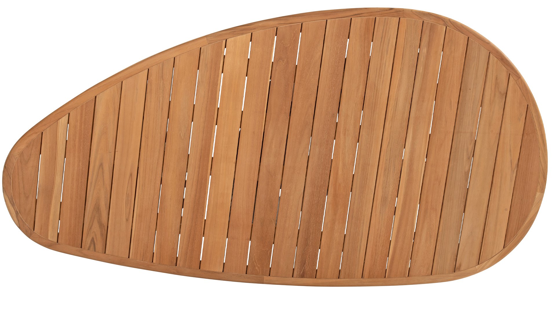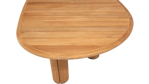 The Corsica Pebble is a beautiful addition to any exterior, fully made from high-quality teak wood. The tabletop has a false oval shape, giving it a playful yet elegant look. This unique shape offers more space for dinners and conversations while adding a modern and organic feel to the space.