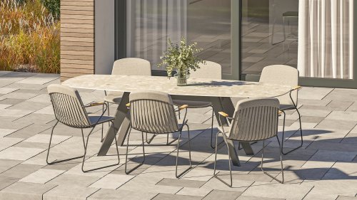 With the 4 Seasons Outdoor Veneto stackable dining chair, you add a touch of elegance and comfort to your outdoor space. A balanced design, where the seat and back cushion are one unit and you can easily slide it over the chair. Even without a cushion, the refined design of this chair is a feast for the eyes. Also take a look at the olive variant of the Veneto dining chair.