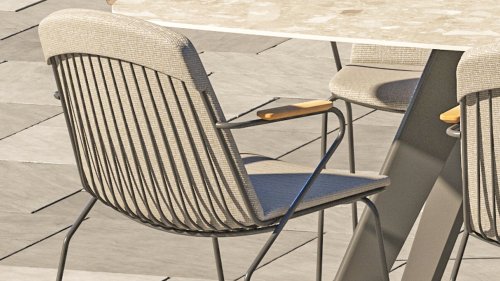 There is nothing like 4SO Veneto Unique in its kind, the minimalist Veneto dining chair made of thin stainless steel tubes available in the colors Anthracite & Olive. An ergonomic design, teak armrests and the cushion that you can easily slide over the backrest. Veneto is also stackable, truly a one-of-a-kind dining chair.