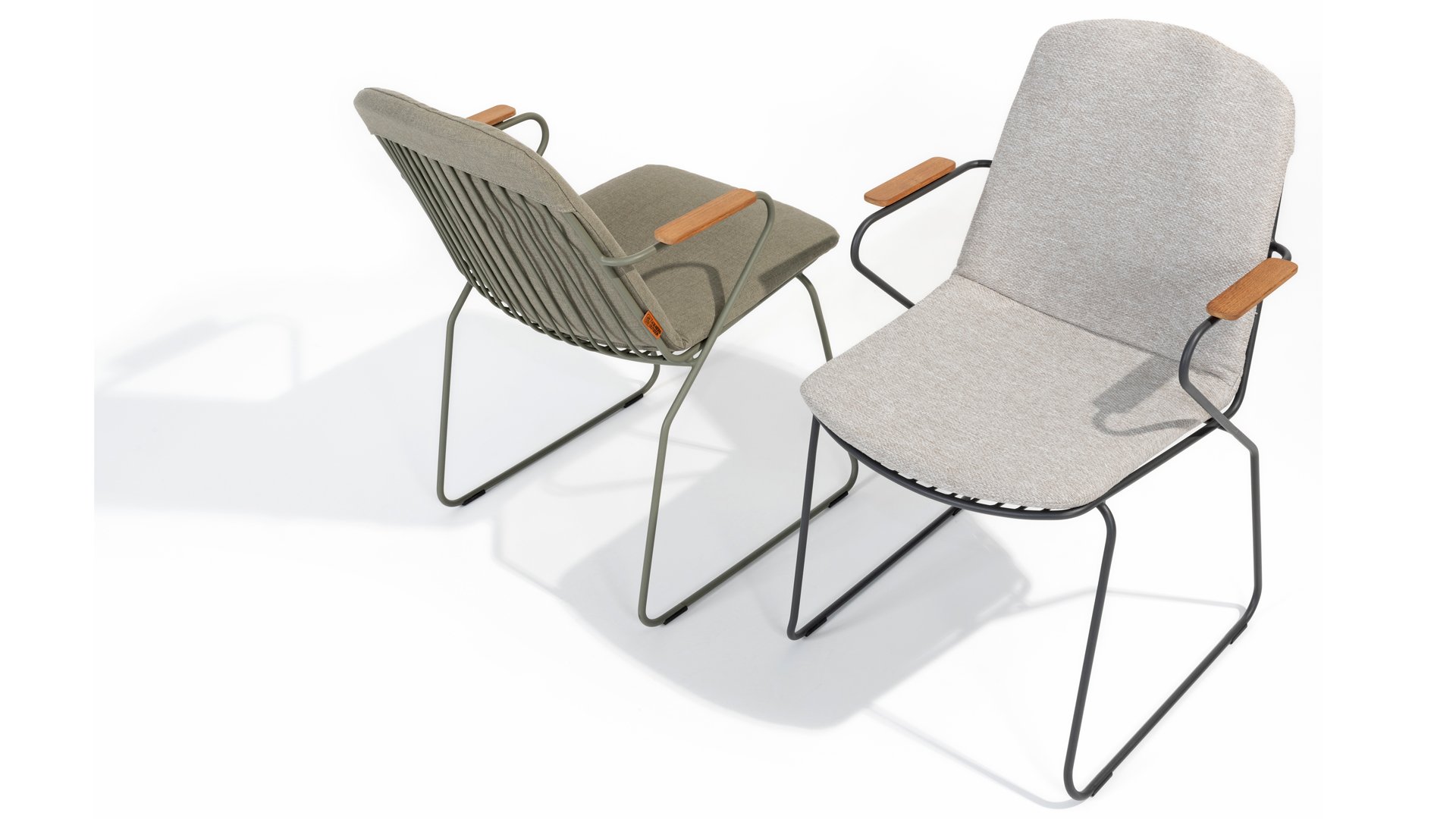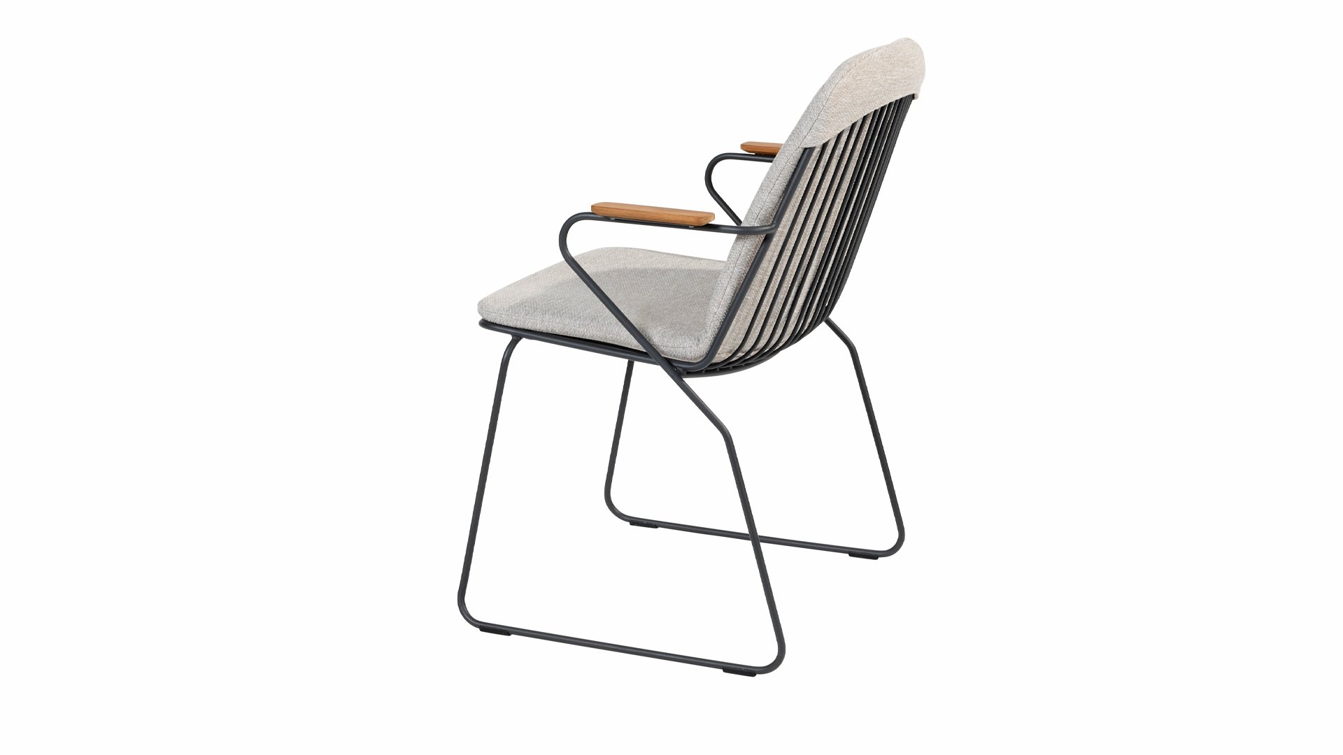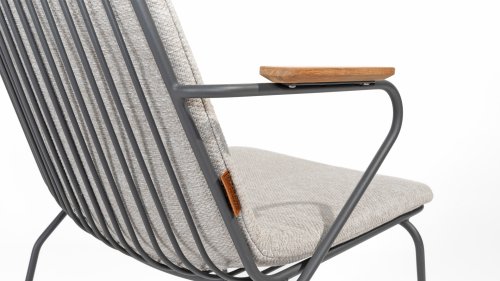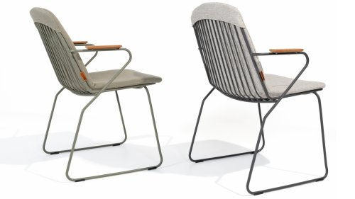 There is nothing like the 4SO Veneto Unique in its kind, the minimalist Veneto dining chair made of thin stainless steel tubes available in the colors Anthracite & Olive. An ergonomic design, teak armrests and the cushion that slides easily over the backrest. Veneto is also stackable, truly a one-of-a-kind dining chair.