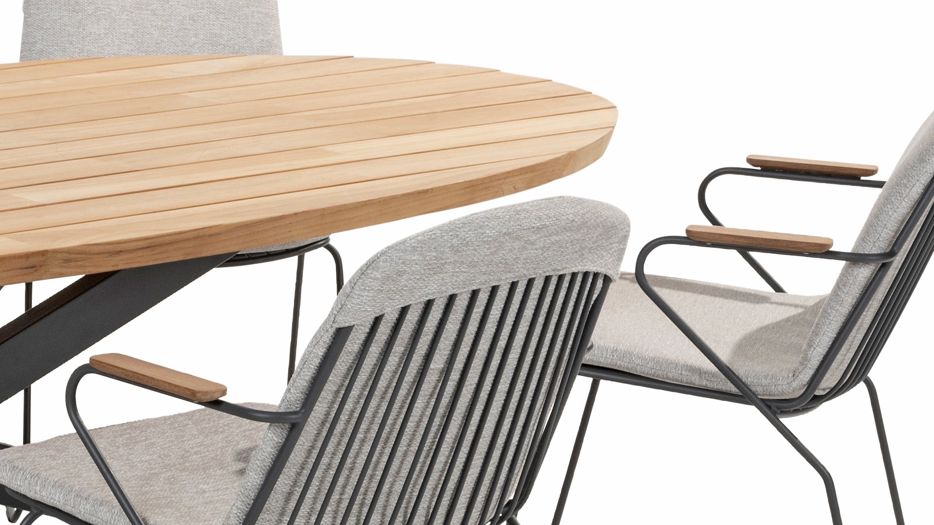 The Taste by 4 Seasons Prado Ellips can rightly be called a work of art. Look at how artfully those leg sets fit together. The thick teak wood top has a slanted edge and gives the table an airy feel. Can be combined with our entire collection of garden chairs.