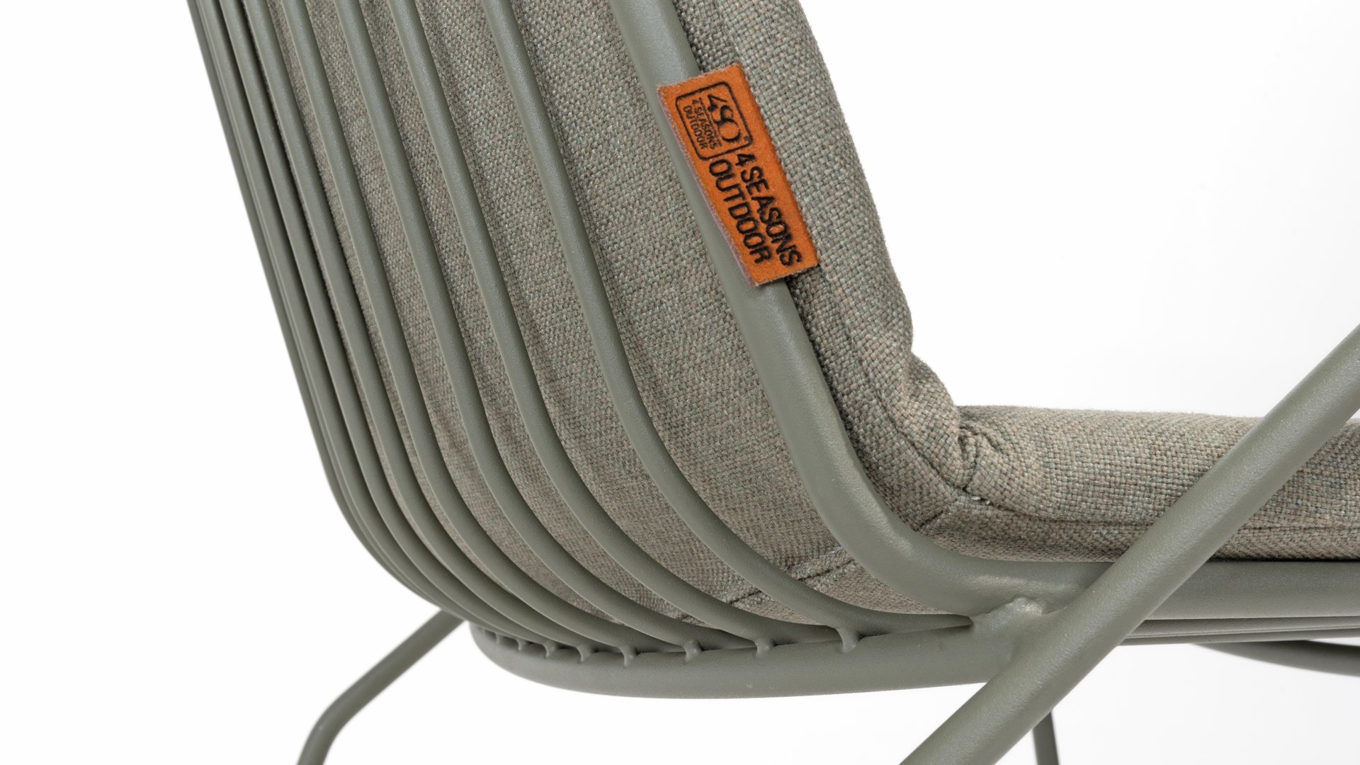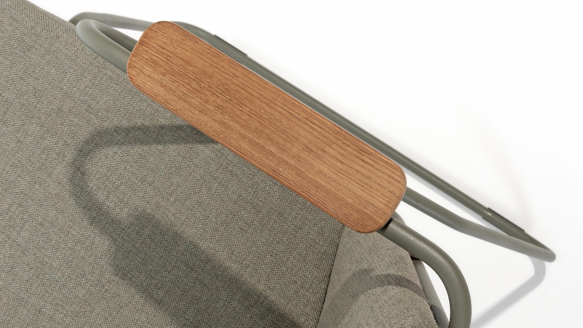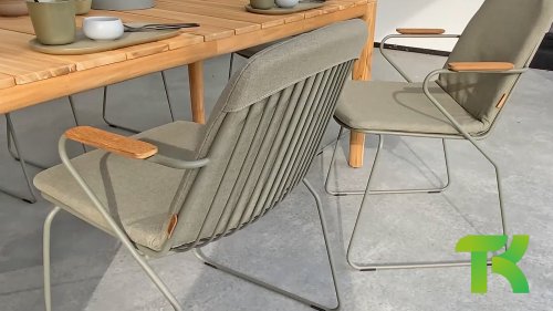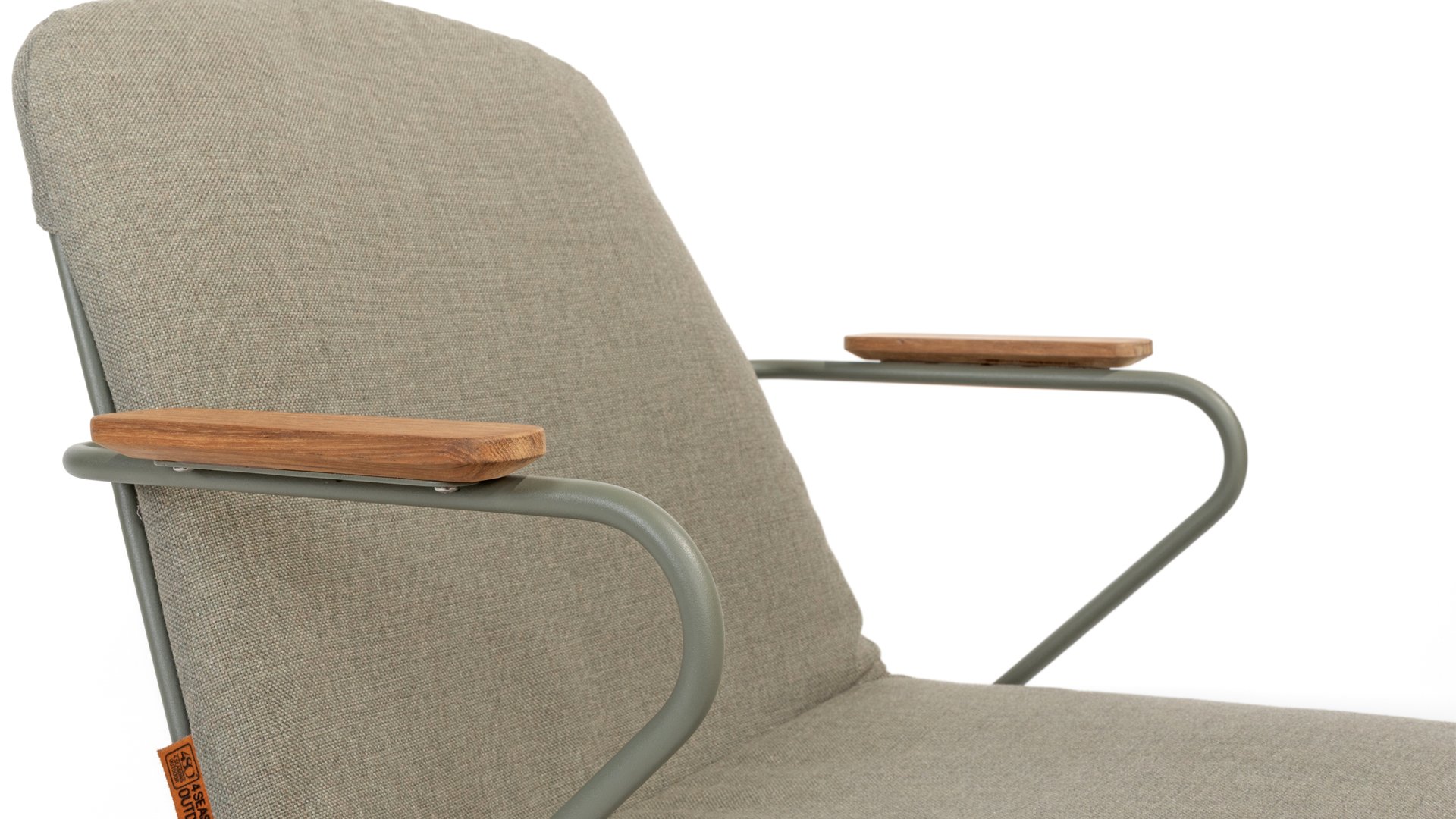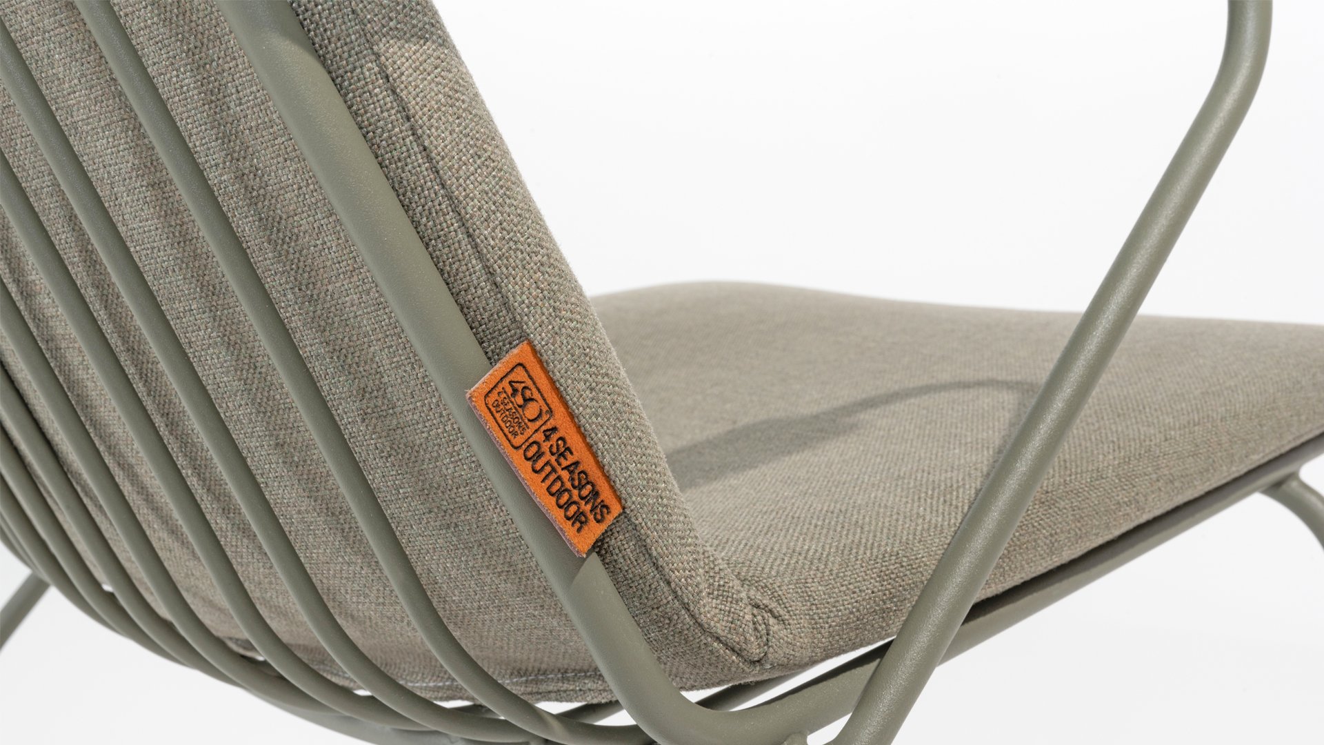 There is nothing like 4SO Veneto. Unique in its kind, the minimalist Veneto dining chair made of thin stainless steel tubes, available in the colors Anthracite & Olive. An ergonomic design, teak armrests, and the cushion that easily slides over the backrest. Veneto is also stackable, truly a one-of-a-kind dining chair.