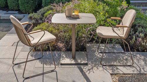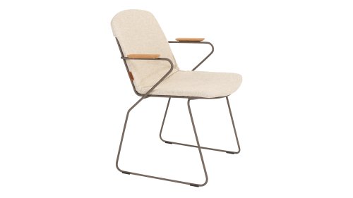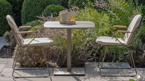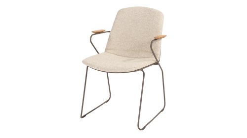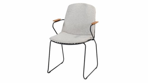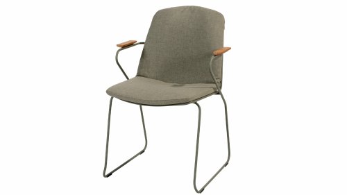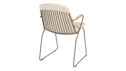 There is nothing like 4 Seasons Outdoor Veneto Unique in its kind, the minimalist Veneto dining chair made of thin stainless steel tubes available in the colors Antraciet, Terre & Olive. An ergonomic design, teak armrests and the cushion that you easily slide over the backrest. Veneto is also stackable, truly a one-of-a-kind dining chair.