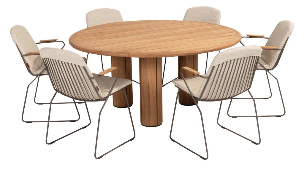 Teak is a natural product and particularly suitable for outdoor use. It is resistant to pests and mold and can withstand sun, rain, and snow. Over time, teak develops a silver-gray patina. Teak is a robust material and requires little maintenance. If you prefer the original color of your teak, you can easily prevent it from turning gray by regularly using our care product. You can also clean teak with green soap. We offer a warranty on all manufacturing and construction defects. This does not include the working of teak. When you choose teak, we expect you to appreciate these qualities. Hairline cracks that may develop, knots in the teak, and rough surfaces or irregular discoloration over time are not covered by our warranty. These characteristics give teak its unique character and appearance; they are part of its natural properties. Be careful with a flowerpot or vase on your teak garden table, as this can cause persistent rings or color variations. Imperfections are common; these imperfections are characteristic of this product. These irregularities can never give ground to a claim, warranty, or complaint. This is a signs ans signature of originality!