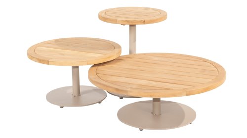 Discover the beauty and versatility of the 4 Seasons Outdoor Volta round coffee table with its beautiful teak tabletop and stainless steel frame. This table adds a touch of natural elegance to your outdoor space and is designed with attention to detail.