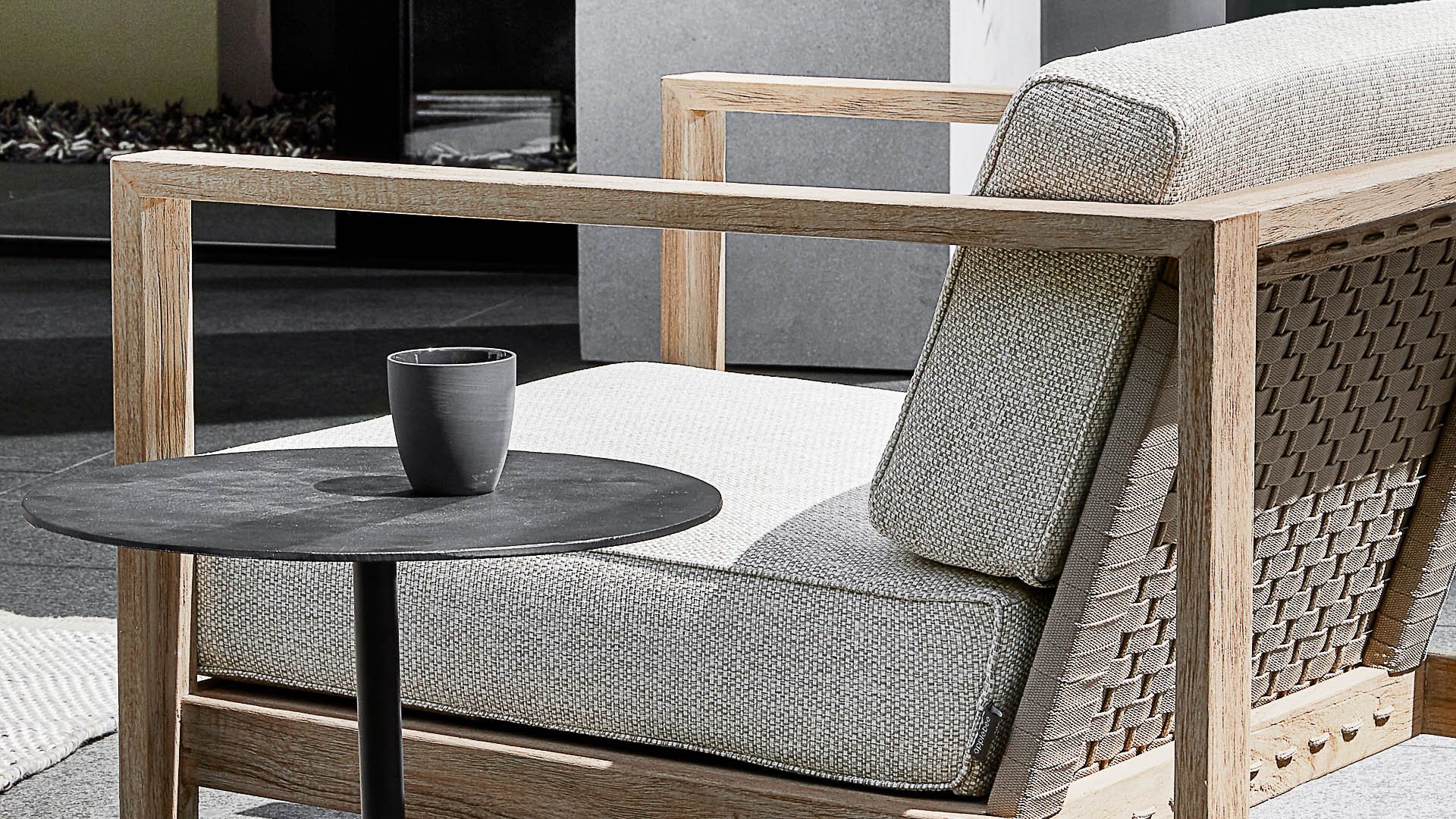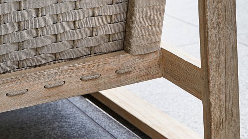 The design of the Apple Bee Antigua is mainly based on angular, cubist shapes that give this lounge set such a nice, sleek character. Both the chairs and the table are made of teak wood with a coastal finish, giving it a light appearance. The seat and backrest of the lounge set consists of braiding in the color taupe. And of course, for seating comfort and to complete the set, there are soft seat cushions in the chair, with our own BEE WETT® technology.