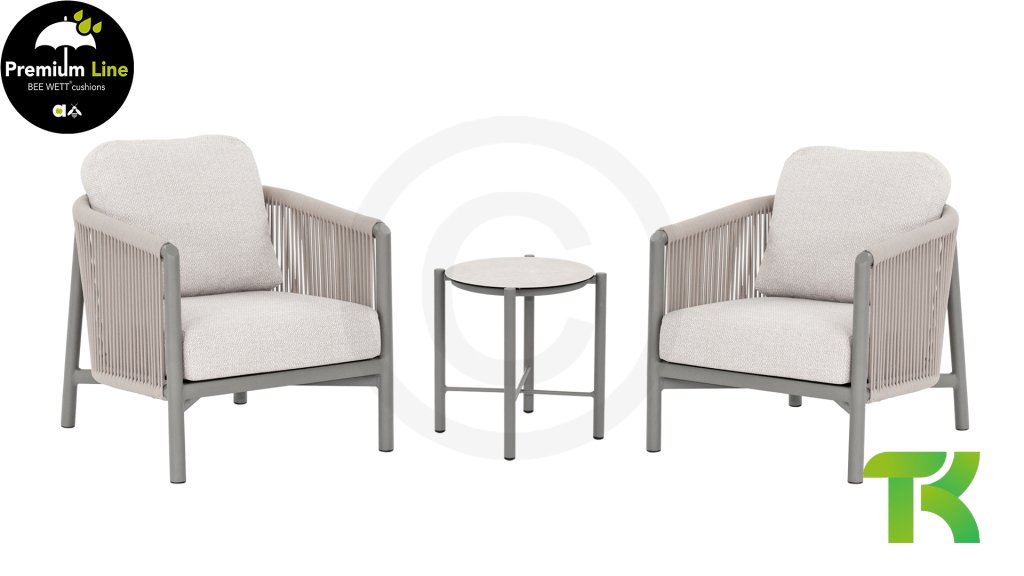The Apple Bee Bora Bora Lounge collection is minimalist, elegant, and clean. It is characterized by the two-layer braided rope, which you can see through. The fine, curved shapes of this furniture create a sleek yet elegant appearance. In combination with the harmonious interplay of taupe colors and the rope, the luxurious Bora Bora is a beautiful addition to the garden. Of course, this lounge set is also equipped with the Bee Wett® cushions. These Bee Wett® cushions are specially weather-resistant cushions. The open weave on the underside of the cushion ensures perfect drainage. This allows your Bee Wett cushion to dry spectacularly faster than other cushions. Additionally, the fabric is resistant to rot and mold, UV resistant, moisture repellent, soft, and comfortable.