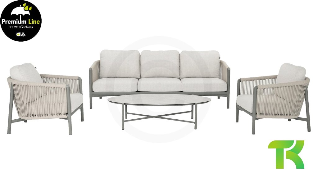 The Apple Bee Bora Bora Lounge collection is minimalist, elegant, and clean. It is characterized by the two-layer braided rope, which you can see through. The fine, curved shapes of this furniture create a sleek yet elegant appearance. In combination with the harmonious interplay of taupe colors and the rope, the luxurious Bora Bora is a beautiful addition to the garden. Of course, this lounge set is also equipped with the Bee Wett® cushions. These Bee Wett® cushions are specially weather-resistant cushions. The open weave on the underside of the cushion ensures perfect drainage. This allows your Bee Wett cushion to dry spectacularly faster than other cushions. Additionally, the fabric is resistant to rot and mold, UV resistant, moisture repellent, soft, and comfortable.