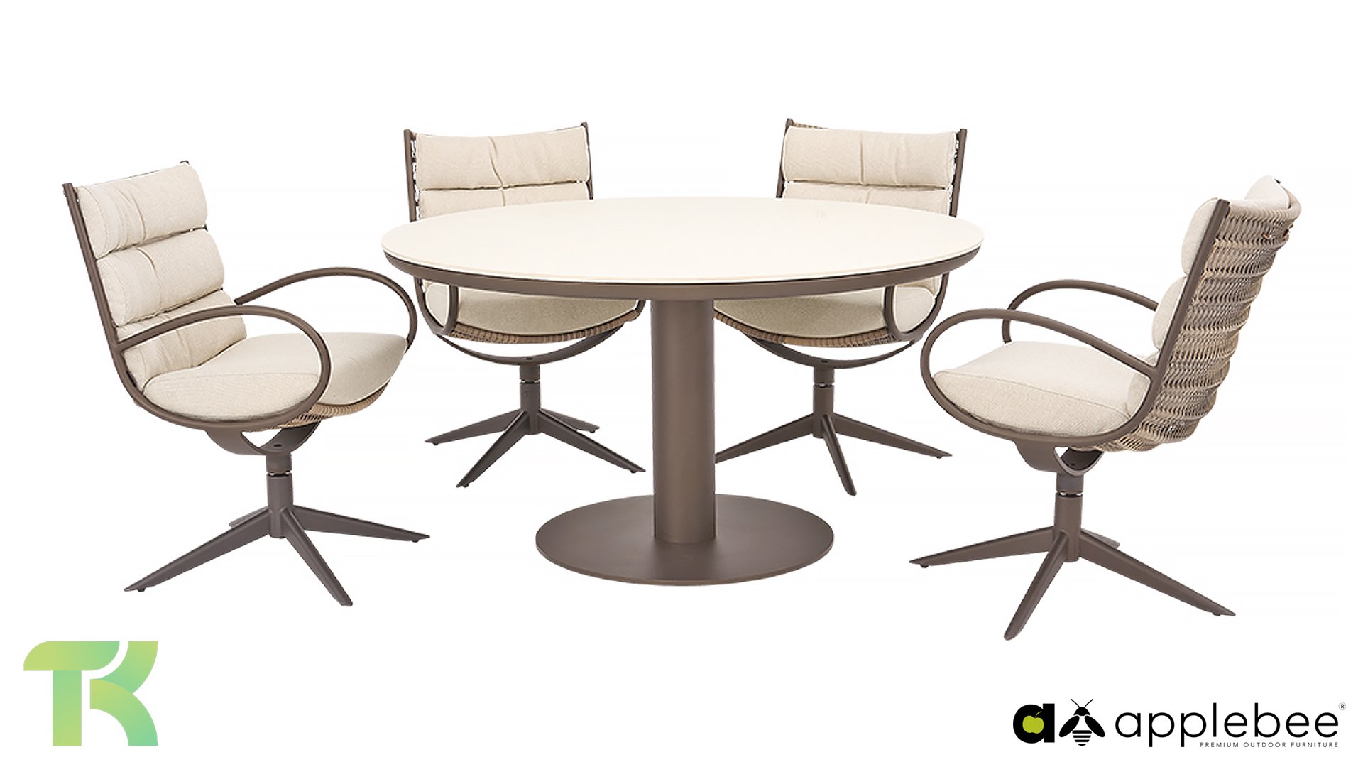 The Apple Bee Camp Bay Bronze: fresh, elegant, and comfortable. This dining set combines a bold, dark color palette with smart functionality, allowing you to enjoy unparalleled comfort on long summer evenings. The organic shapes and hues create a haven of tranquility in the garden, while the robust materials ensure years of enjoyment.