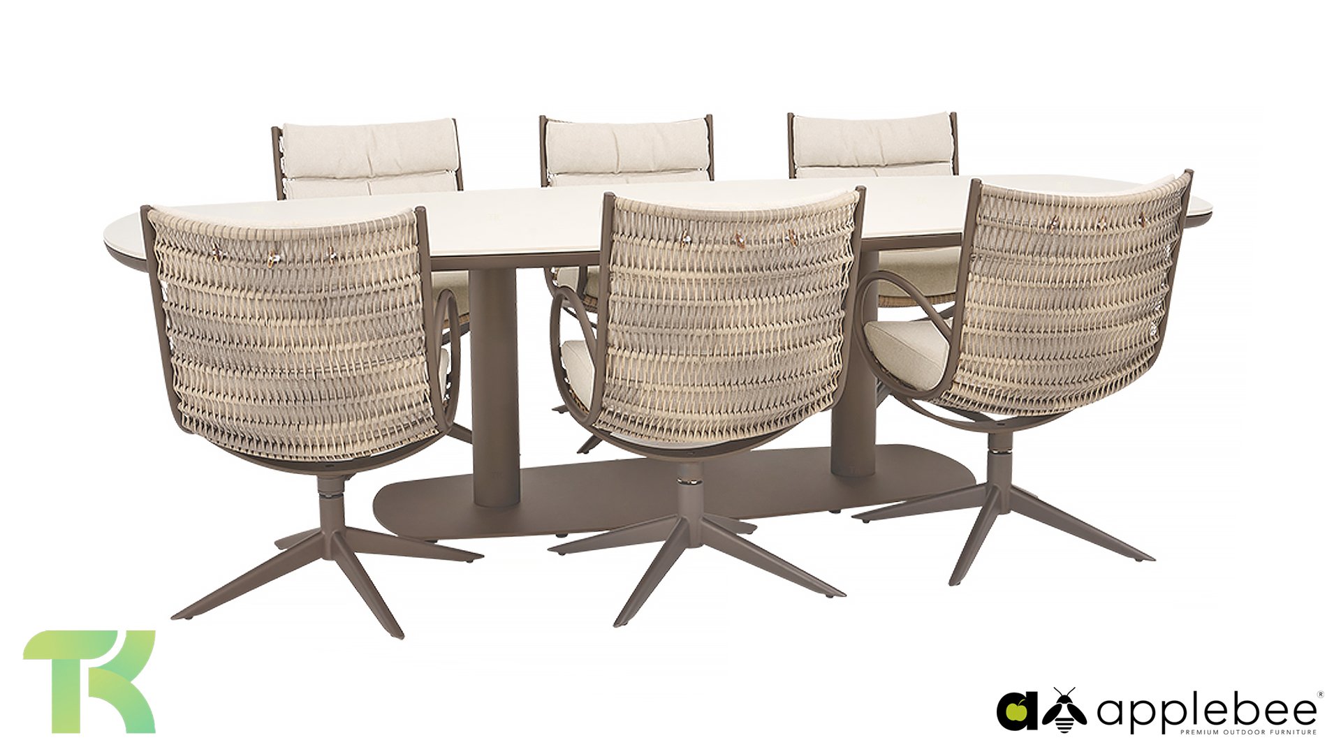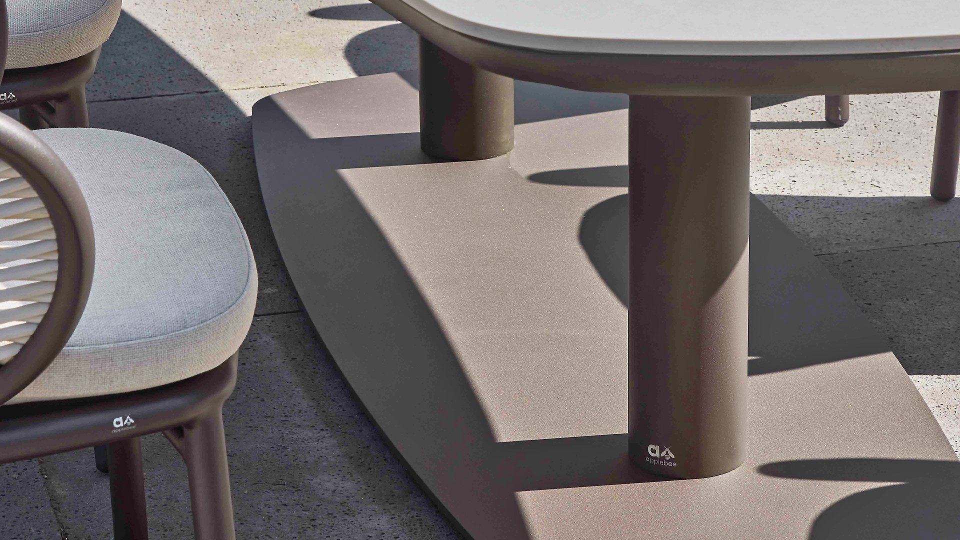 The Apple Bee Camp Bay Bronze: fresh, elegant, and comfortable. This dining set combines a bold, dark color palette with smart functionality, allowing you to enjoy unparalleled comfort on long summer evenings. The organic shapes and hues create a haven of tranquility in the garden, while the robust materials ensure years of enjoyment.