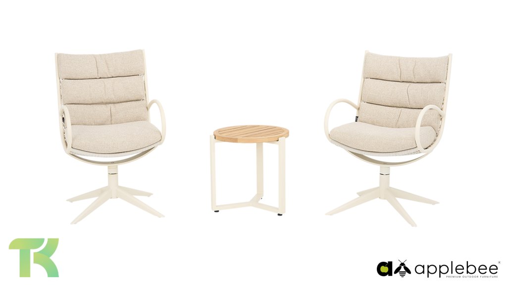 The Apple Bee Camp Bay Oyster: fresh, elegant, and comfortable. This dining set combines a refined, light color palette with smart functionality, allowing you to enjoy unparalleled comfort on long summer evenings. The organic shapes and soft hues create a haven of tranquility in the garden, while the robust materials ensure years of enjoyment.