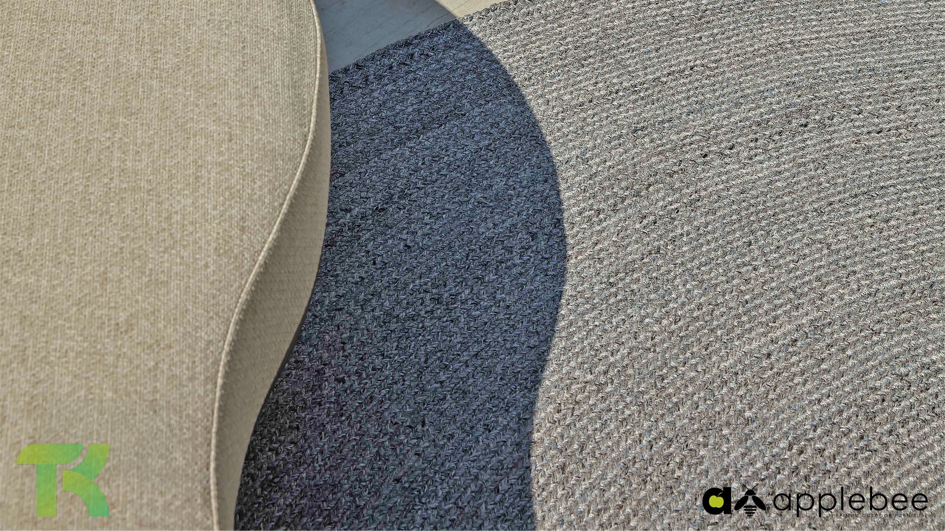 The Swirl Ø300cm is available in Dark Grey, Sand, and Taupe.