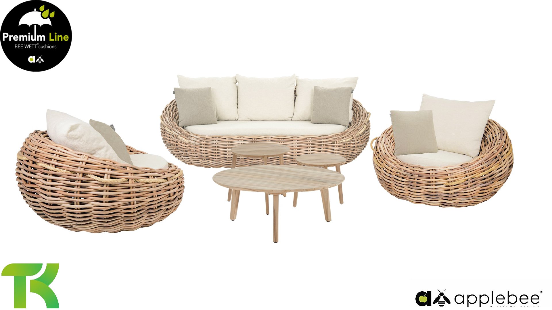 The Applebee's Cocoon is inspired by the safe, secure cocoon in which a caterpillar transforms into a beautiful butterfly. Beautiful Cream Bouclé lounge cushions with Bee Wett® technology—combined with the exceptionally thick, 20mm Biculair® braided yarn!