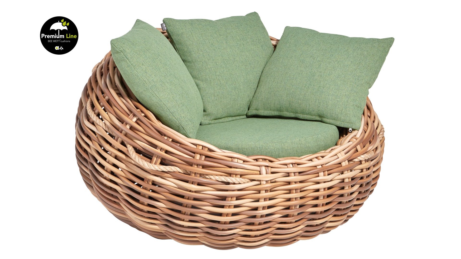 The Cocoon by Applebee is inspired by the safe, cocooned space where a caterpillar transforms into a beautiful butterfly. Beautiful green lounge cushions - optionally with Bee Wett® technology - combined with the exceptionally thick braided Biculair® wire of 20 mm!