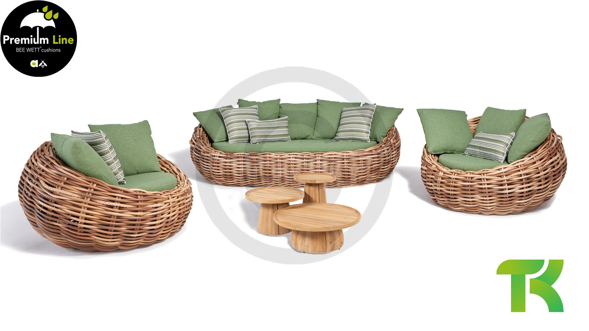 The Cocoon by Applebee is inspired by the safe, cocooned space where a caterpillar transforms into a beautiful butterfly. Beautiful green lounge cushions - optionally with Bee Wett® technology - combined with the exceptionally thick woven Biculair® wicker of 20 mm!
