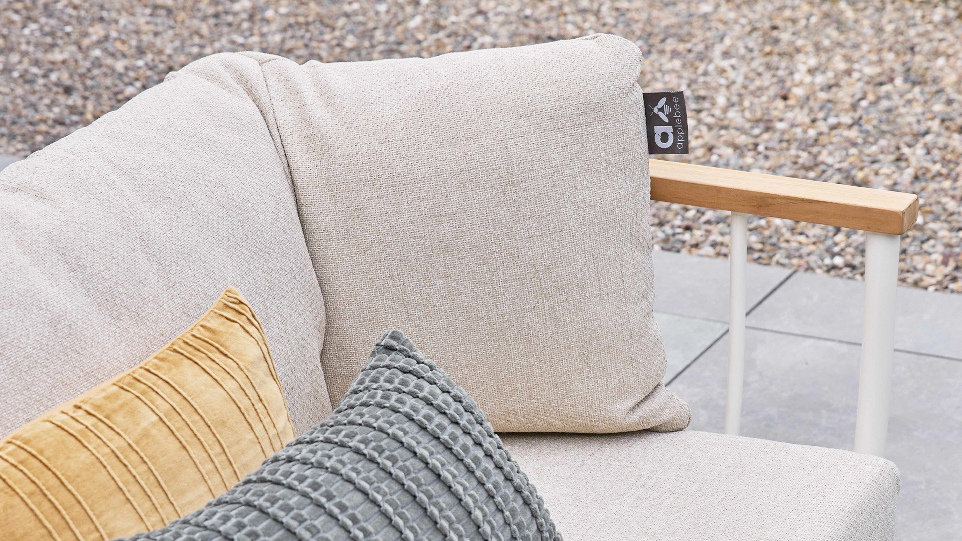 The Apple Bee Bee Wett cushions are special weather-resistant cushions. The removable cover is washable at a maximum of . The open weave on the underside of the cushion ensures perfect drainage. This means your Bee Wett cushion dries spectacularly faster than other cushions. Furthermore, the fabric is resistant to rot and mold, UV-resistant, moisture-repellent, soft, and comfortable. The cover has a zipper and is washable.