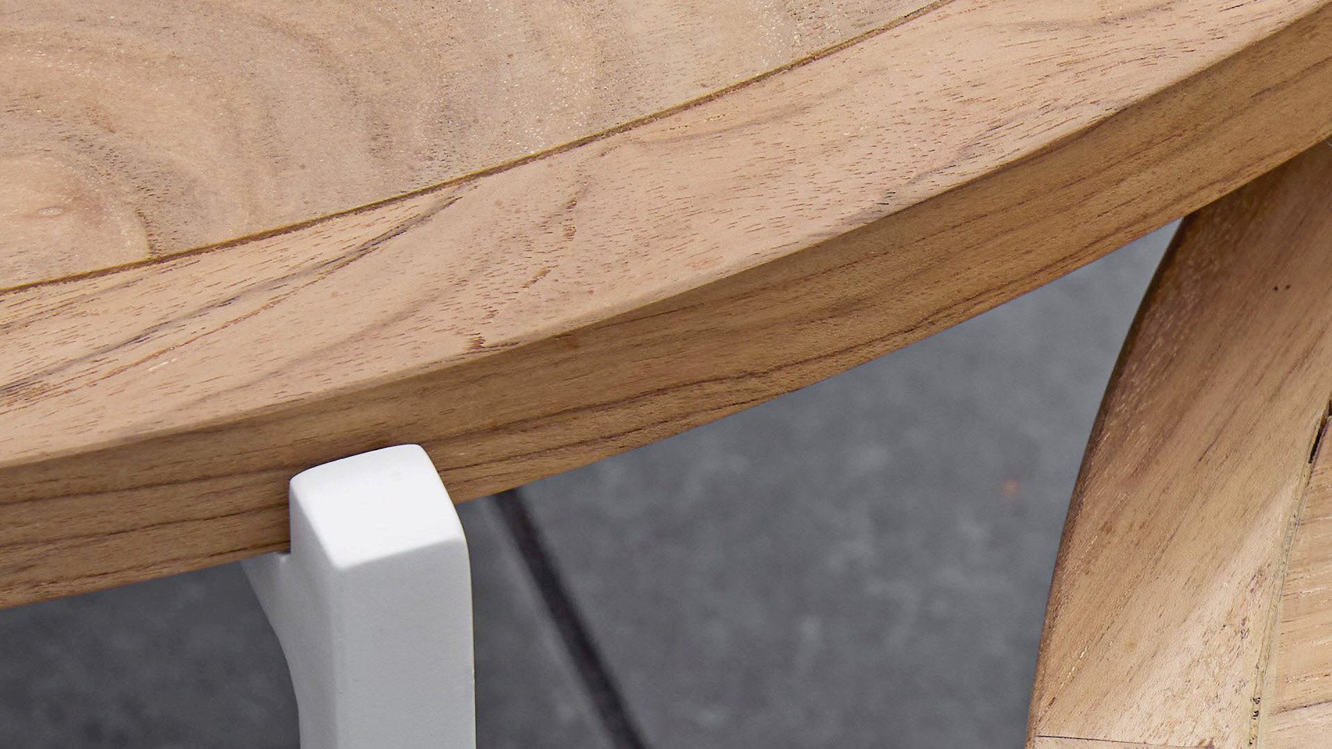 Teak is a natural product and particularly suitable for outdoor use. It is resistant to pests and mold and can withstand sun, rain, and snow. Over time, teak develops a silver-gray patina. Teak is a robust material and requires little maintenance. If you prefer the original color of your teak, you can easily prevent it from turning gray by regularly using our care product. You can also clean teak with green soap. We offer a warranty on all manufacturing and construction defects. This does not cover the working of teak. If you choose teak, we expect you to appreciate these qualities. Hairline cracks that may develop, knots in the teak, and rough surfaces or irregular discoloration over time are not covered by our warranty. These characteristics, which give teak its unique character and appearance, are part of its natural properties. Be careful with a flowerpot or vase on your teak garden table, as this can cause persistent rings or color variations. Imperfections are common; these imperfections are characteristic of this product. These irregularities can never give rise to a claim, warranty, or complaint. This is a mark of originality!