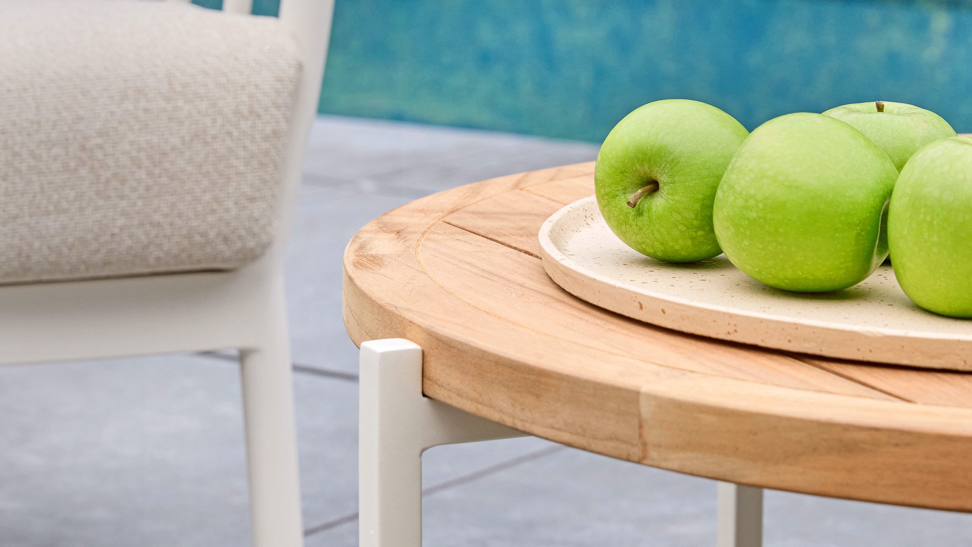 Discover Condor, the stylish coffee table series from Apple Bee that effortlessly combines design, durability, and functionality. The certified teak top gives each table a warm, natural look, while the powder-coated aluminum base provides a modern look.