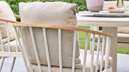 The Condor dining armchair comes with weather-resistant seat cushions. Naturally, they feature Apple Bee's famous BeeWett cushions for ultimate comfort! Apple Bee furniture is constructed from the finest materials, and this is especially true for the cushions. BeeWett cushions are special weather-resistant cushions that you can simply leave outside. The removable cover is made of the highest quality fabrics, all of which are washable. Besides being water-repellent, the fabric is also guaranteed UV-resistant. Unlike regular foam, the unique BeeWett filling doesn't absorb moisture. The open weave on the underside of the cushion ensures perfect drainage, ensuring your BeeWett cushion dries dramatically faster than other cushions. Furthermore, the Olefin fabric is rot and mildew resistant, UV-resistant, moisture-resistant, soft, and comfortable.