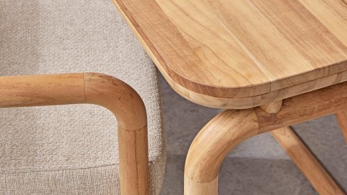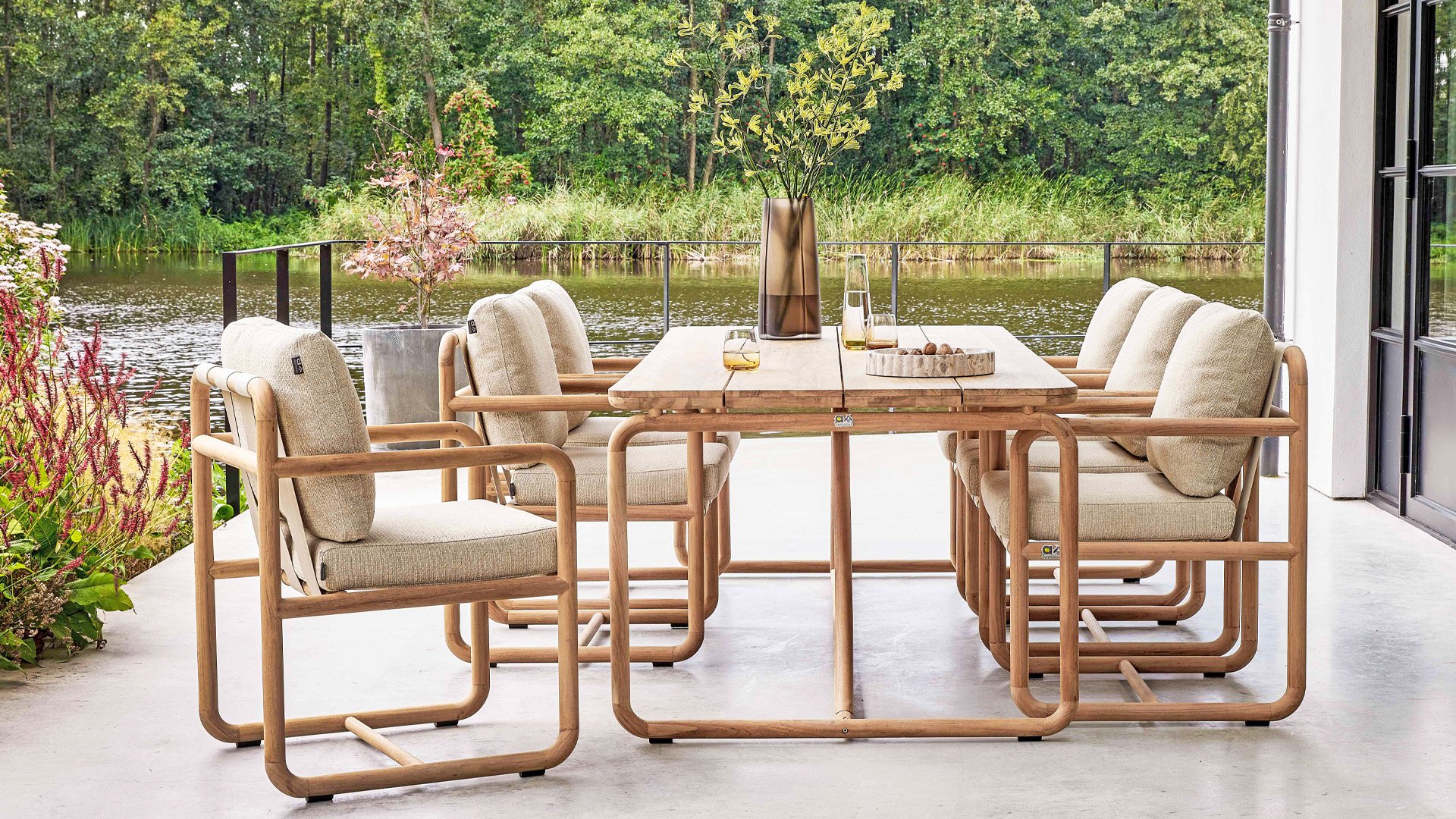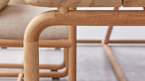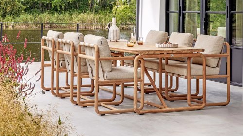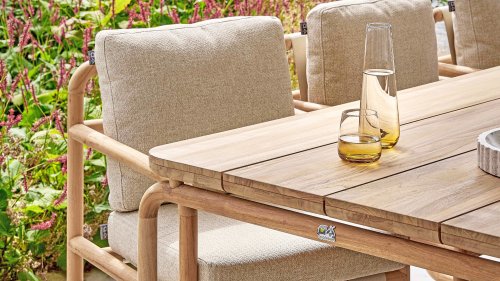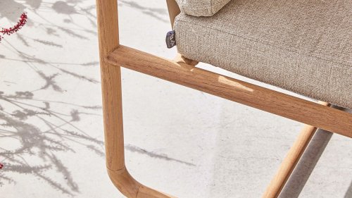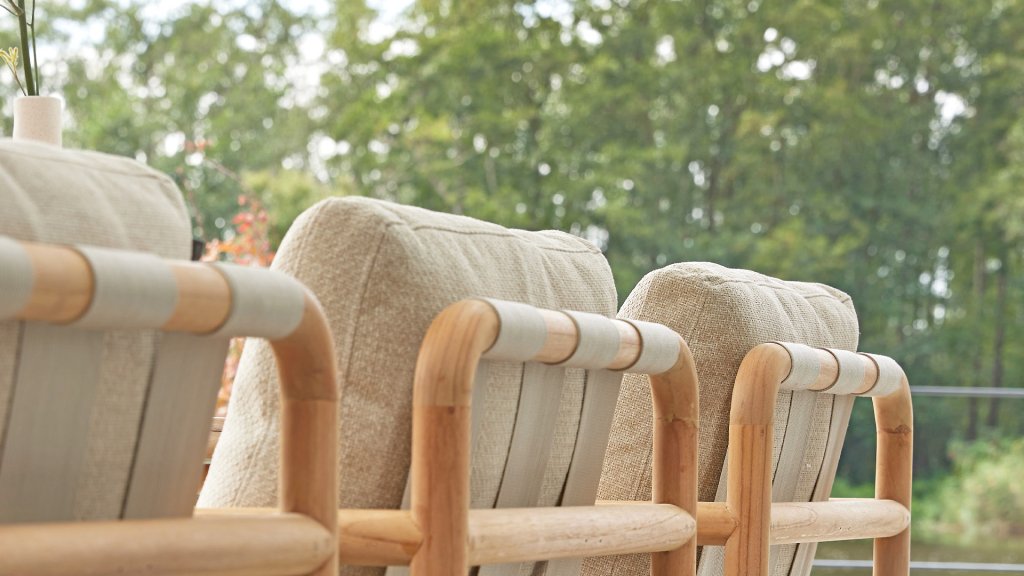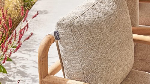 Less is more, within the Dolce Cotton Flower Lounge and Dining series, the garden furniture is designed in a minimalistic yet rustic style, focusing on functional simplicity and elegant round shapes. The round forms keep this design perfectly balanced. The seat and backrest are made of Belt weave for a comfortable support and a playful look. The resilience of the Belt weave and the thick cushions create sublime seating comfort! The cushions come in the color Slate Grey and feature the well-known Bee Wett® technology. The cushions have an Olefin cover that can be unzipped and washed at 30 degrees Celsius. This fabric is highly weather-resistant and durable.