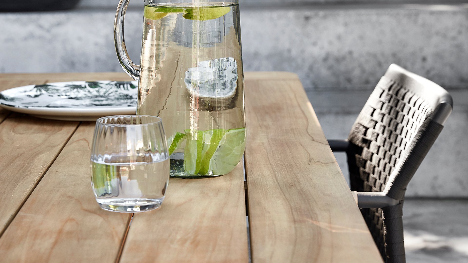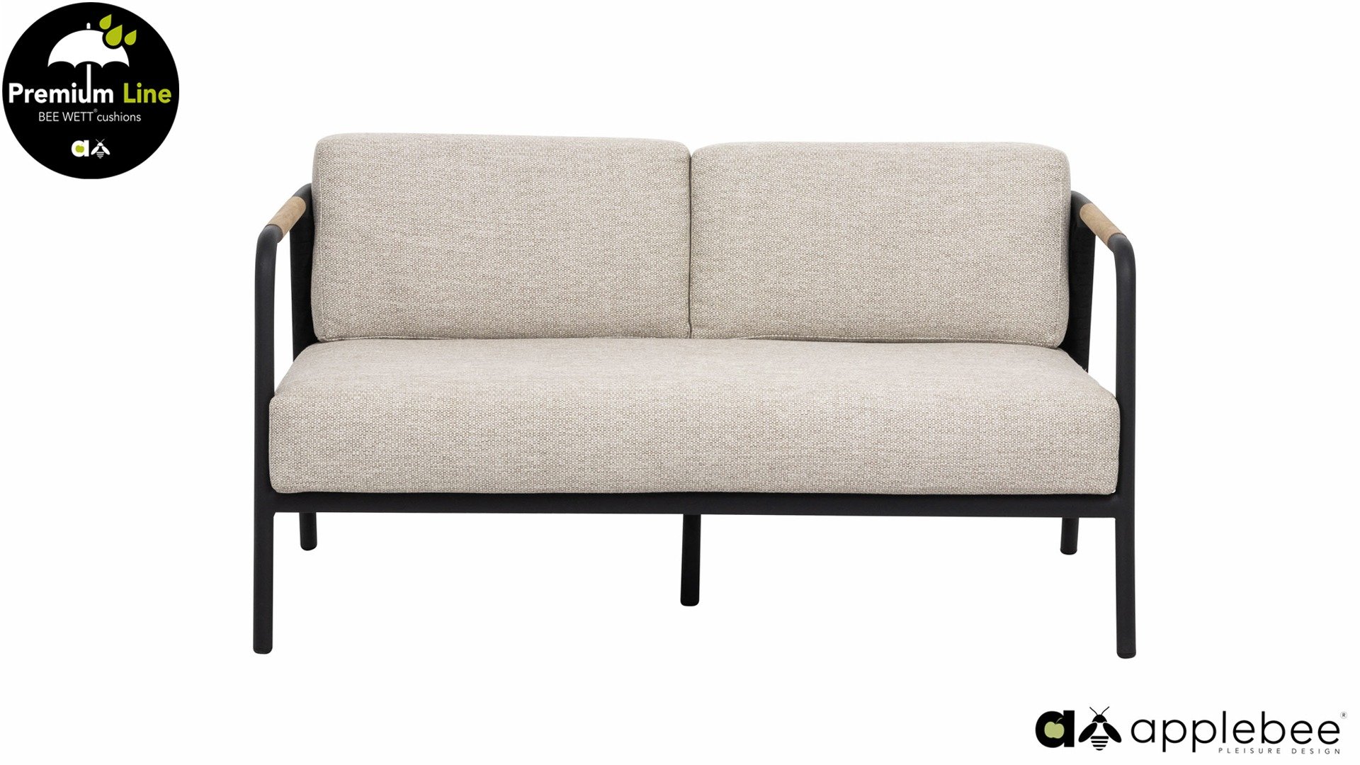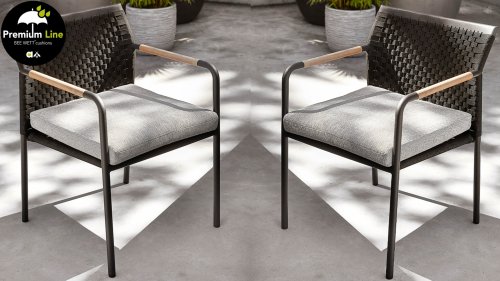 The base material of the Elle Rope garden set is matte black powder-coated aluminum. The BEE WETT® cushions have a coarse weave structure, but with a soft touch for optimal comfort. Along with the beautiful curves in the backrest and the use of natural teak wood in the tabletop and chair armrests, the Applebee Elle Dining receives that pleasant touch of natural warmth.