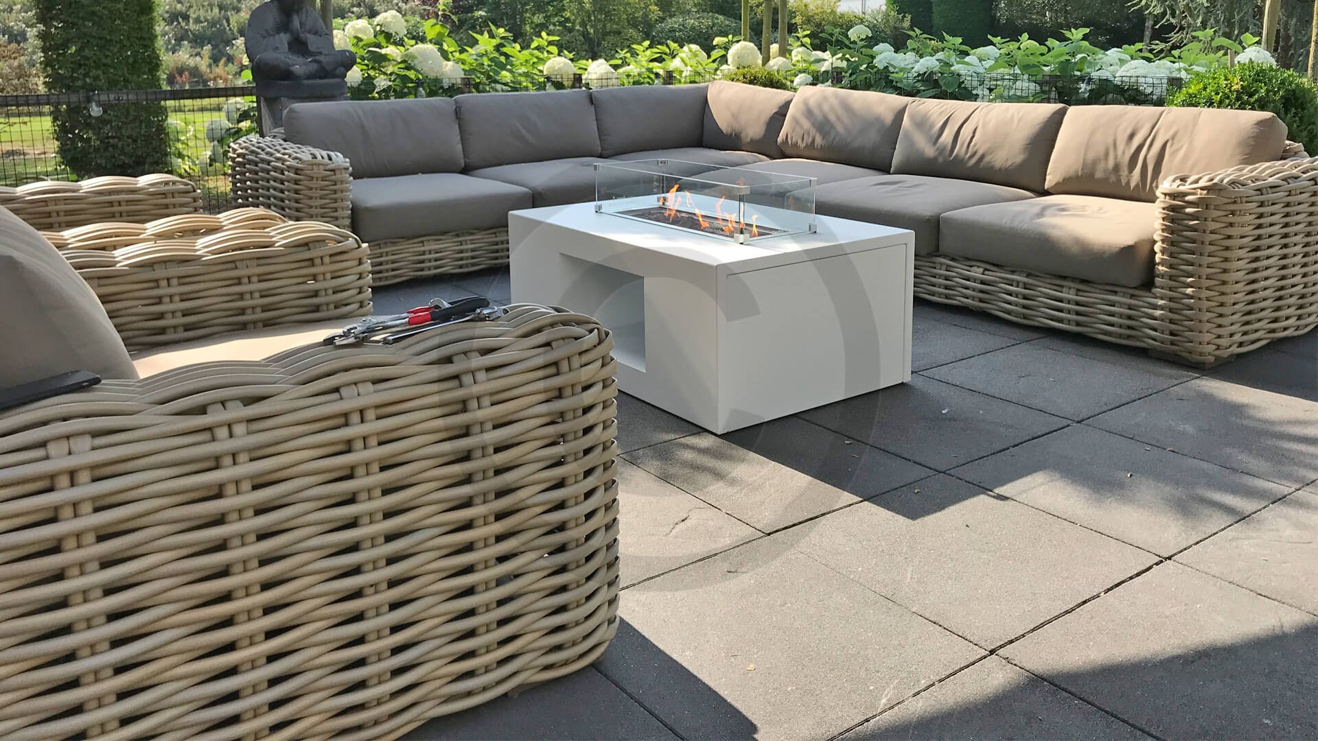 Apple Bee FFF Lounge is grand and captivating, the seat is almost one meter deep and the braided wire is 20mm thick! The extremely thick braided wire requires a special weaving technique, which only the best weavers master. These craftsmen manually weave each strand one by one. With FFF, you bring a true piece of craftsmanship into your home. With the connector piece, you can extend one side of the lounge set or use it as a separate seating element.