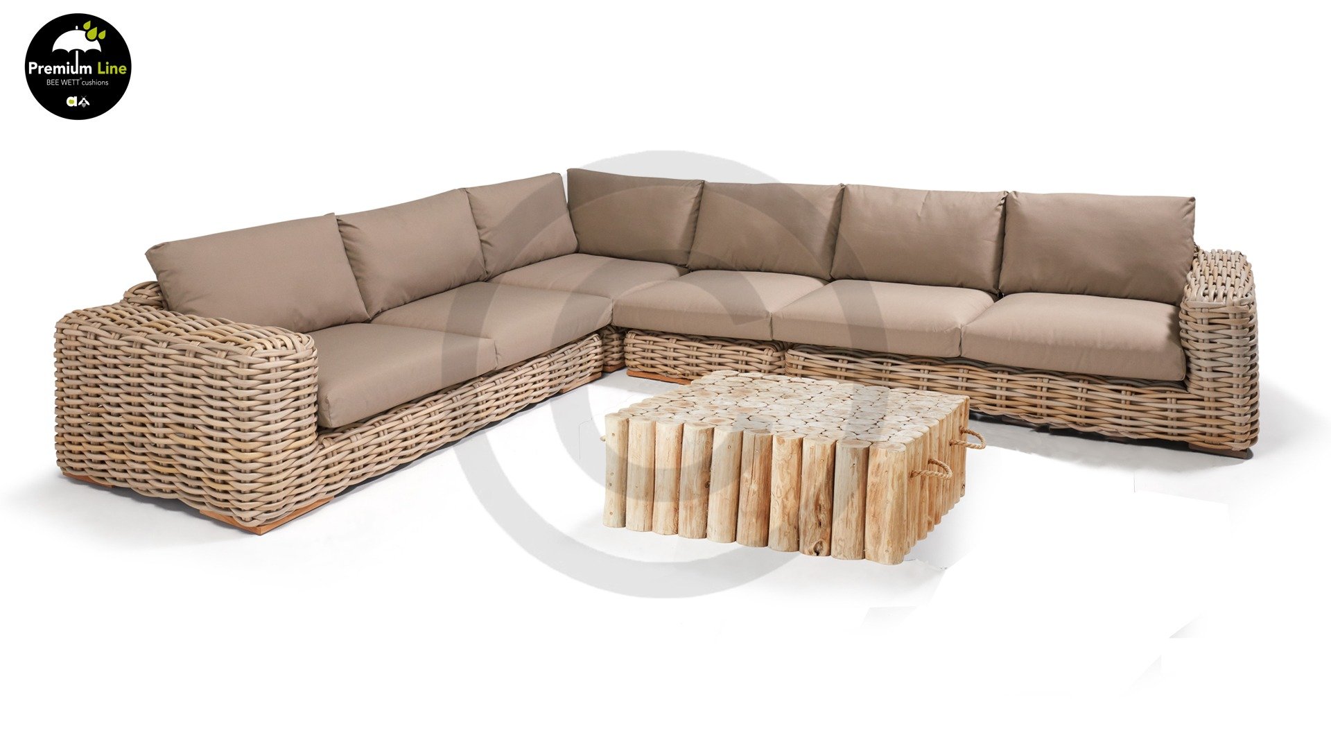 Apple Bee FFF Lounge is grand and captivating, the seat is almost one meter deep and the braided wire is 20mm thick! The extremely thick braided wire requires a special weaving technique, which only the best weavers master. These craftsmen manually weave each strand one by one. With FFF, you bring a true piece of craftsmanship into your home. With the connector piece, you can extend one side of the lounge set or use it as a separate seating element.