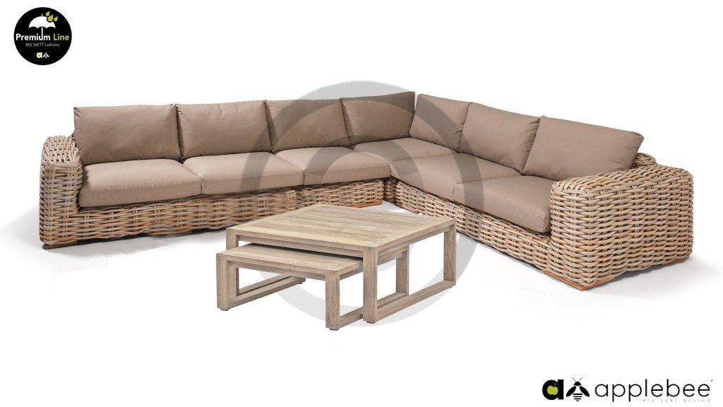 Apple Bee is characterized by the use of special Biculair® wickerwork, originally developed for professional applications in the hospitality industry. This Biculair® wickerwork is a lifelike, sustainable alternative to rattan. This highly durable synthetic rattan fiber (HDPE) is completely weatherproof, colorfast, recyclable, and therefore an environmentally friendly choice. The appearance and performance of the furniture remain unaffected by European weather conditions, and the colors retain their natural vibrancy. The superior quality of this wickerwork, verified by the Netherlands Organisation for Applied Scientific Research (TNO), is clearly demonstrated compared to other comparable materials.