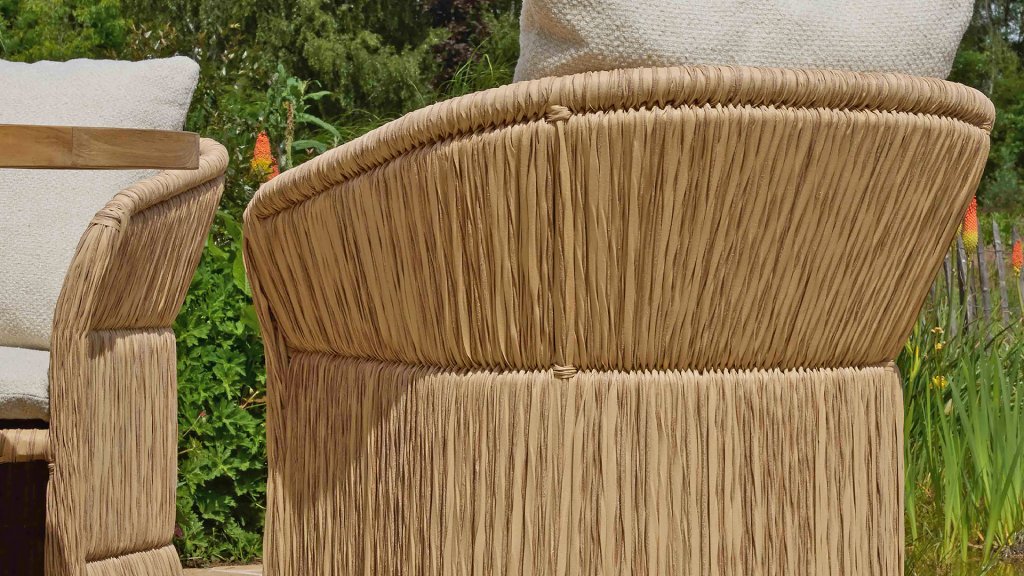 The secret of the Gili lies in its material: Biculair twisted leaf. This thick, round wickerwork in a warm, natural hue gives the chair an authentic wicker look while being completely weatherproof. The chair is designed as a comfortable shell with a tightly woven base, giving the garden table a solid and rich appearance.