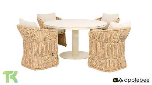 Bring the serene atmosphere of a luxury resort to your own backyard with the Apple Bee Gili dining chair. This series immediately stands out with its charming, robust appearance, perfectly suited to current garden trends. The chair combines a rustic bohemian look with the high-quality comfort you expect from Apple Bee.