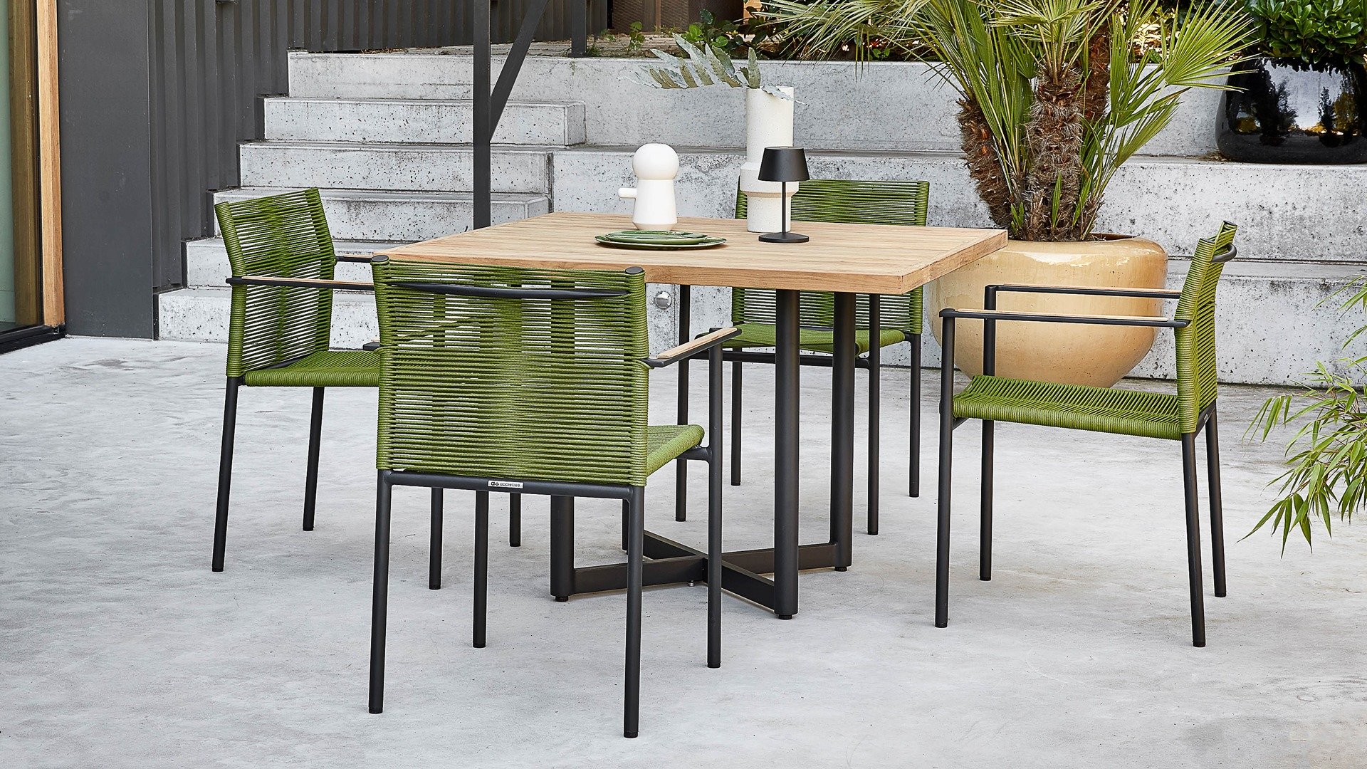 The Apple Bee Jakarta dining chair is made of high-quality rope. Specially designed for outdoor use, it's incredibly comfortable, even without a seat cushion. It's available in four different colors: Lemon, Black, Gray, and Olive. The Apple Bee Jakarta Dining chair is also stackable, making it practical.