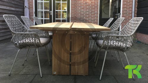 The Joie de Vivre garden table is available in 2 lengths: 250cm and 200cm. The table is made of thick certified teak wood.