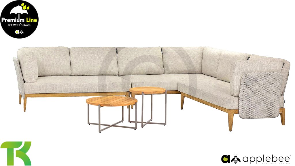 A natural SVLK teak base with slightly narrowing rounded legs provides the set with a refined foundation. Lisa also has a bolder side; The tightly woven Sunproof strap gives the armrest a beautiful texture. At any time of the day, it receives a different effect, depending on how the sunlight hits the weave. Soft and comfortable cushions, naturally in Apple Bee's Bee Wett quality, complete the picture. Here you can dream away for hours!