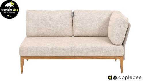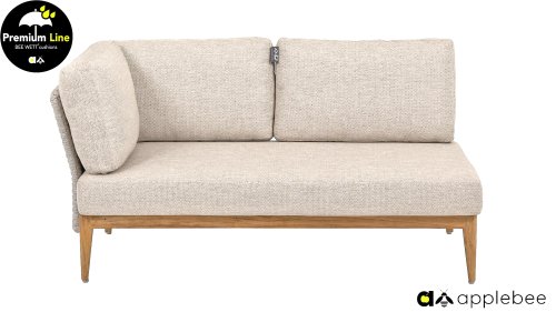 A natural SVLK teak base with slightly narrowing rounded legs provides the set with a refined foundation. Lisa also has a bolder side; The tightly woven Sunproof strap gives the armrest a beautiful texture. At any time of the day, it receives a different effect, depending on how the sunlight hits the weave. Soft and comfortable cushions, naturally in Apple Bee's Bee Wett quality, complete the picture. Here you can dream away for hours!