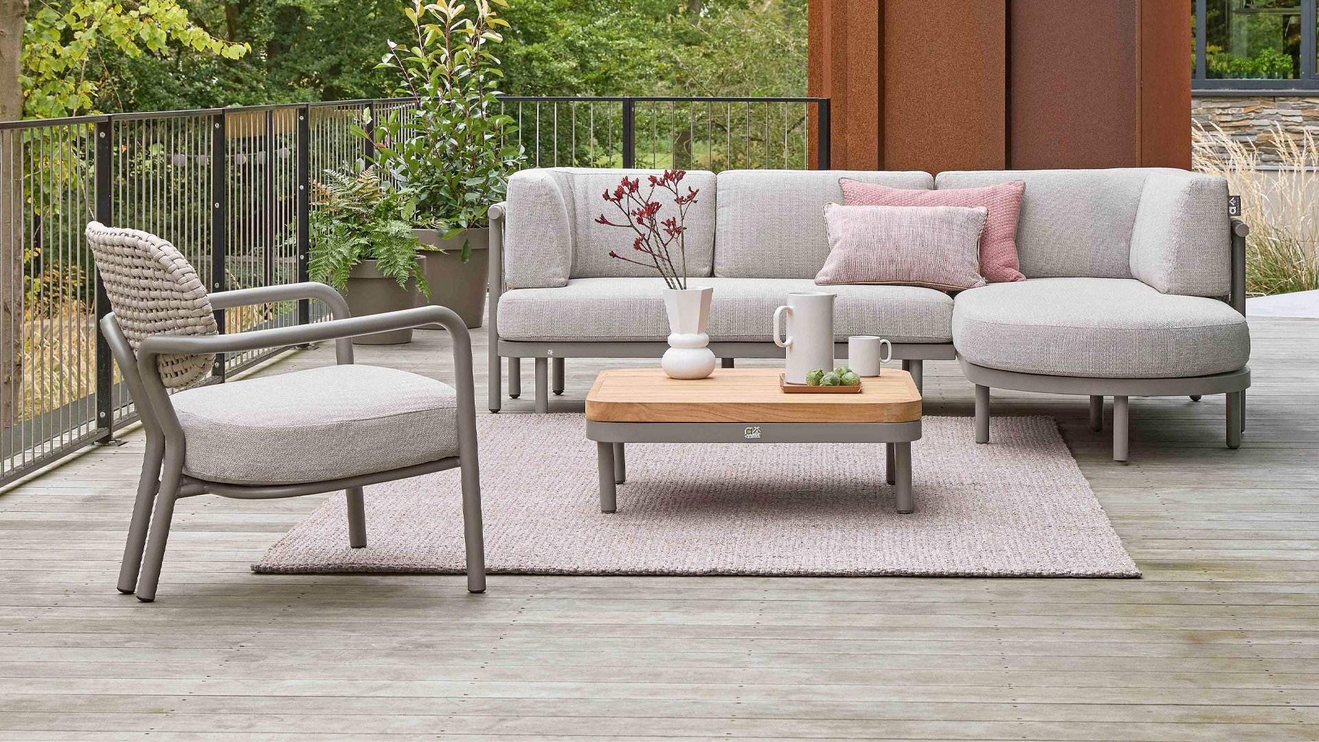 Looking for versatility, comfort, and design? Then the stylish Maui lounge set in taupe is definitely for you. Have you noticed the unique, organically shaped back cushions? They're perfectly designed to follow the curved backrest, ensuring ultimate comfort and a beautiful, stylish look. With a neutral base in taupe and smoked grey, the Maui acts as a blank canvas on which you can easily create your own ambiance. Like a chameleon, this set adapts effortlessly, both in terms of arrangement and styling. The collection also offers tables in various shapes, with a choice of two tabletop materials. That's what we call versatility at its finest!
