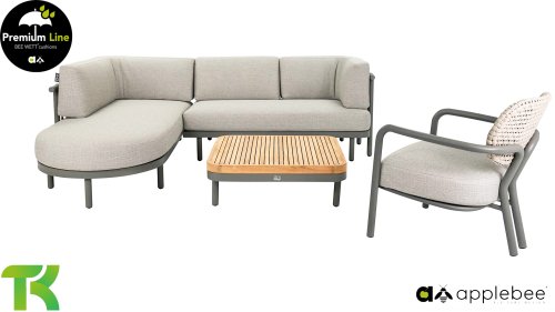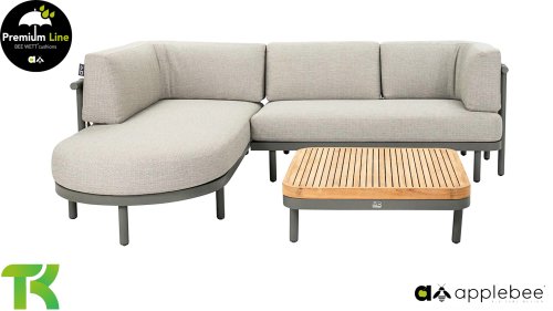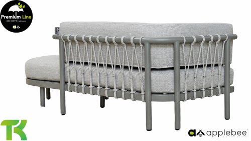 With the Maui Lounge, another typically original Apple Bee designer piece has joined the collection! In this premium line, the cushions feature Bee Wett® technology, which ensures they dry quickly after a heavy rain shower. So you can simply leave the cushions outside. The drainage on the underside of the cushions ensures water can easily drain away. Its generous size allows you to disappear into luxury and comfort. The Apple Bee Maui lounge set is therefore ideal for truly relaxing.