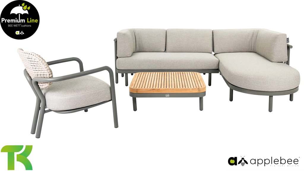 The Maui Lounge adds another typically original Apple Bee designer piece to the collection! This premium line features Bee Wett® technology, which ensures they dry quickly after a heavy rain shower. So you can simply leave the cushions outside. The drainage on the underside of the cushions allows water to drain easily. Its generous size allows you to sink into luxury and comfort. The Apple Bee Maui lounge set is therefore perfect for truly relaxing.