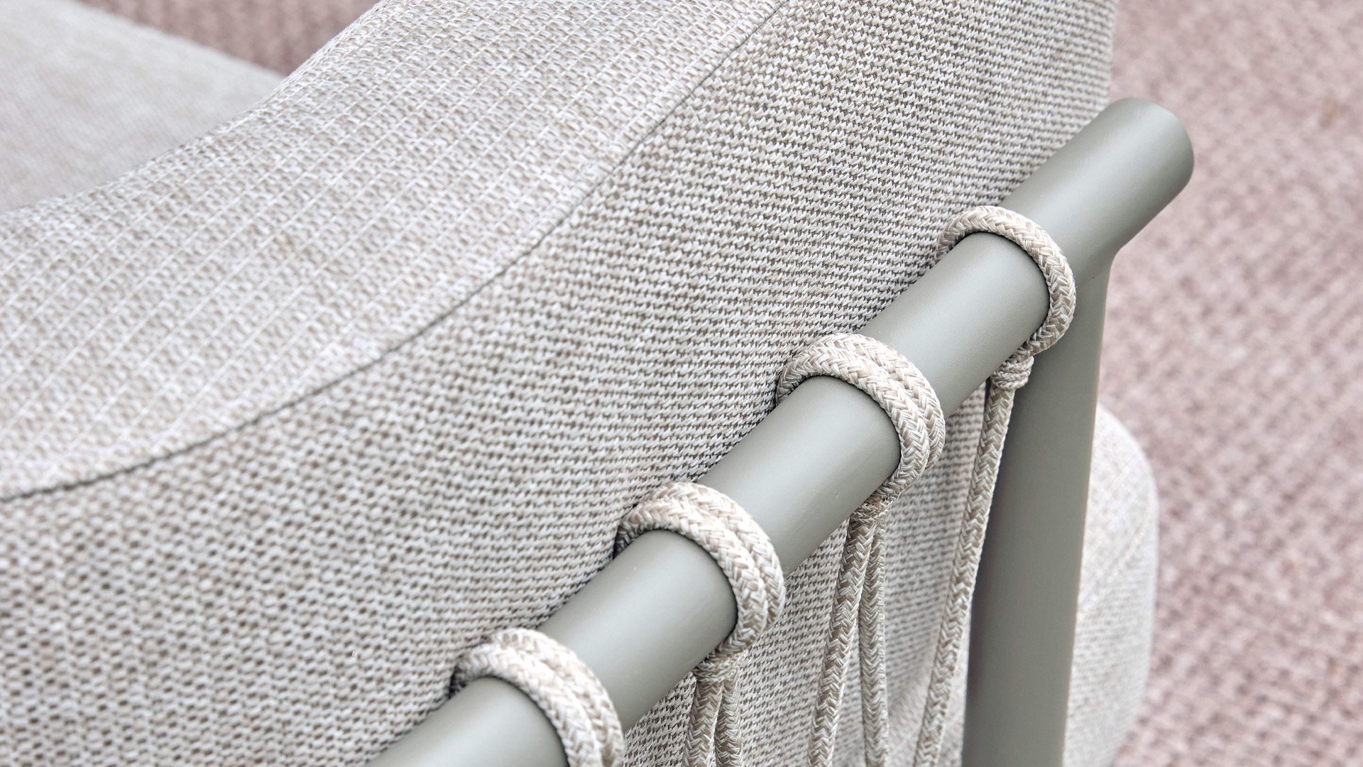 This beautiful material is perfect for outdoor use, because Taste Rope isn't just any shoelace. Taste uses very high-quality rope made from 100% SDP (Solution Dyed Polypropylene). This material is extremely strong and has minimal stretch. Polypropylene is oil-based, making it virtually impermeable to dirt and contaminants, just like our cushions. Taste offers exclusive designs using hand-woven rope patterns and techniques.